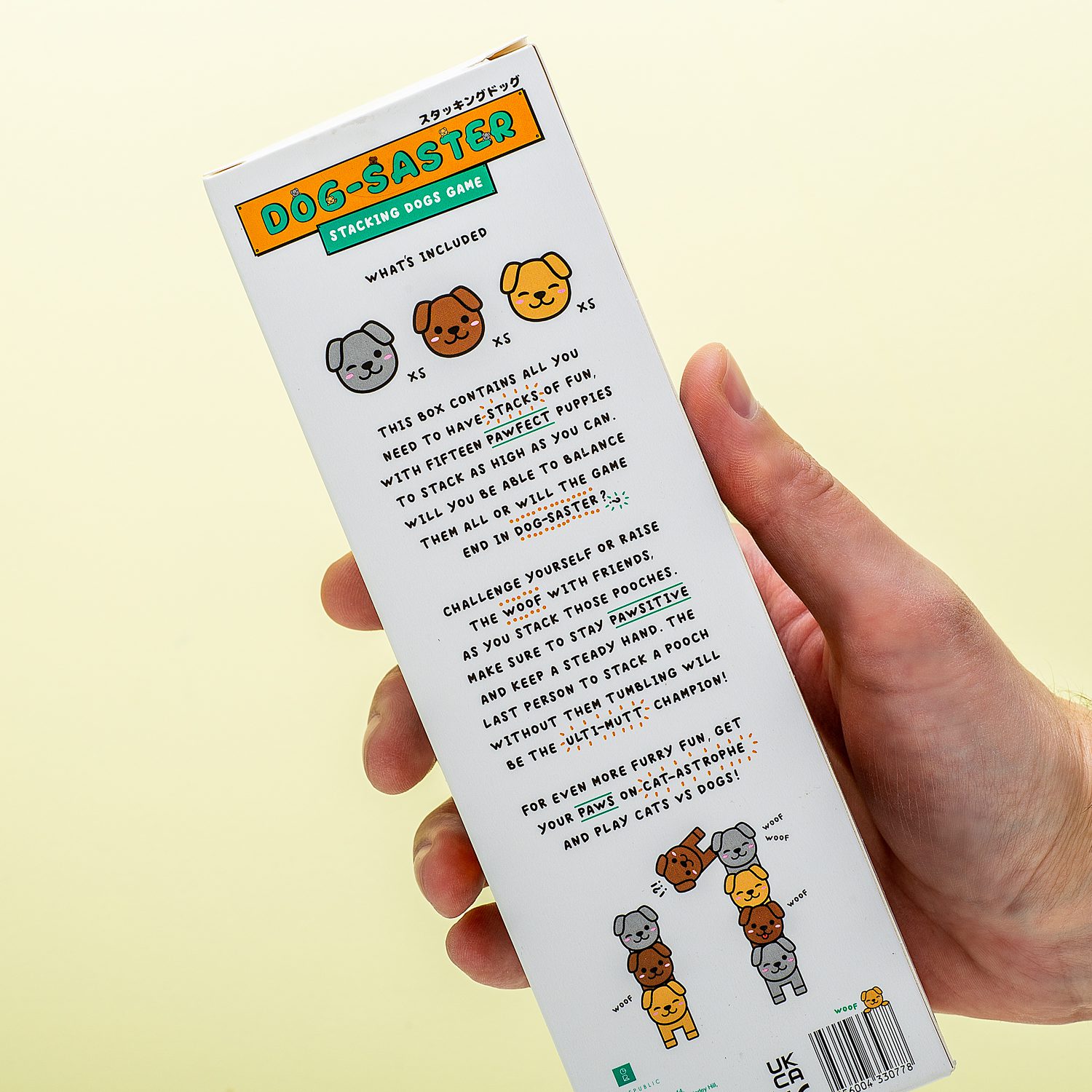 Is stapelen met blokken jou te saai? Doe het dan met honden! Niet met je echte honden natuurlijk, want voor je het weet krijg je puppy’s, maar met het Dog-saster stapelspel van Gift Republic. Dit leuke spelletje bestaat uit vijftien honden die je moet opstapelen. Wie de hondentoren om laat vallen heeft verloren.