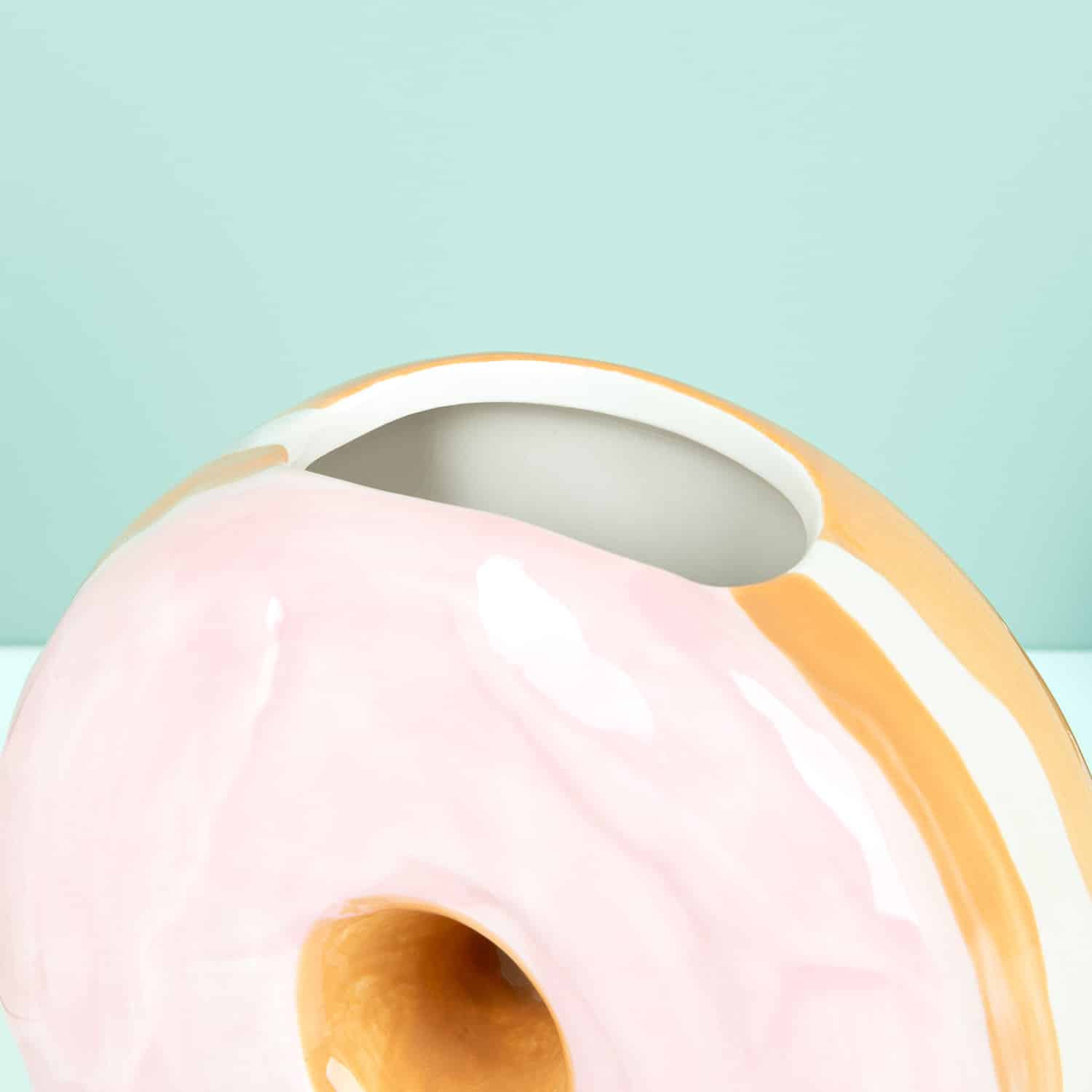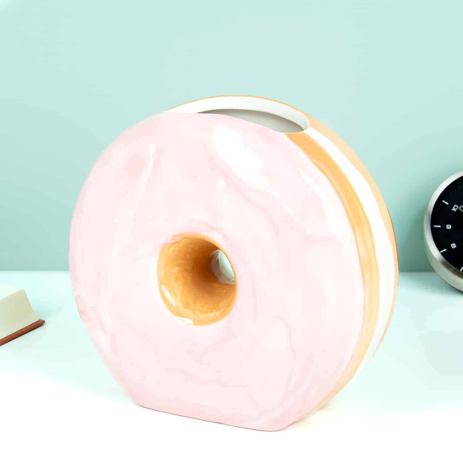 Hey zoetekauw! We hebben iets leuks voor je: de Donut vaas van DOIY. Deze grappige vaas laat je ongetwijfeld watertanden, want het lijkt net een echte donut. De vaas is een leuke toevoeging aan je interieur, want door zijn vrolijke uiterlijk tovert hij altijd een lach op je gezicht. Wil jij iemand een hart onder de riem steken of zoek je een leuk verjaardagscadeau? Deze vaas is het perfecte cadeautje.