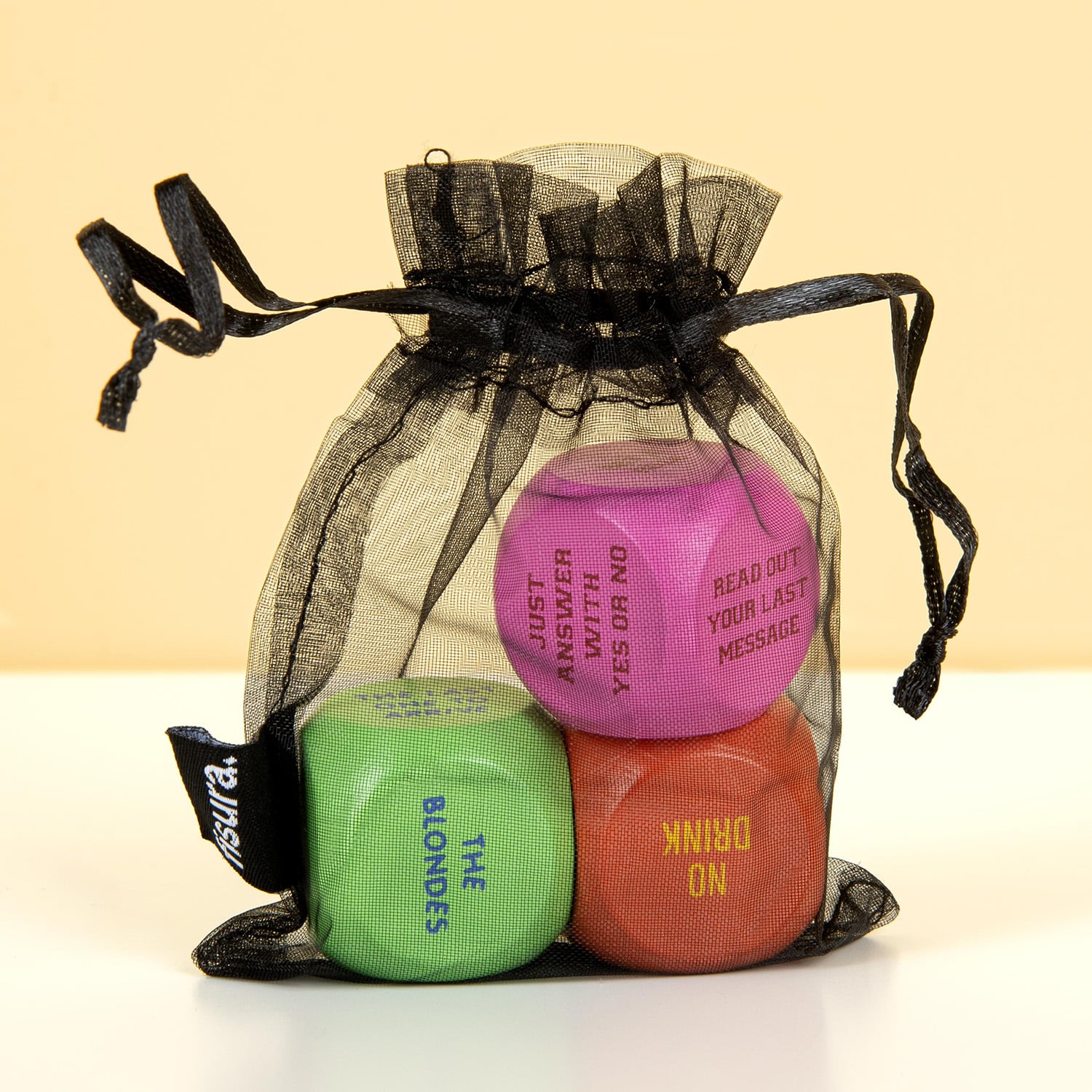De blondjes moeten hun drankje opdrinken en één kledingstuk uittrekken. Klinkt als een foute tienerfilm uit de zero’s? Dat kan zo zijn, maar met de Drankspel dobbelsteenset van Fisura kan het je toch zomaar overkomen. Deze drie dobbelstenen bepalen namelijk: wie er moet drinken, hoeveel diegene moet drinken en bevatten een uitdaging. Dus misschien hoeft degene die het laatst komt niks te drinken, maar wel zijn laatste bericht voorlezen. En misschien moet degene die het meest dronken is nog een half glas leegdrinken én nog een drankje bestellen. Met deze dobbelsteenset wordt elk feestje een succes!