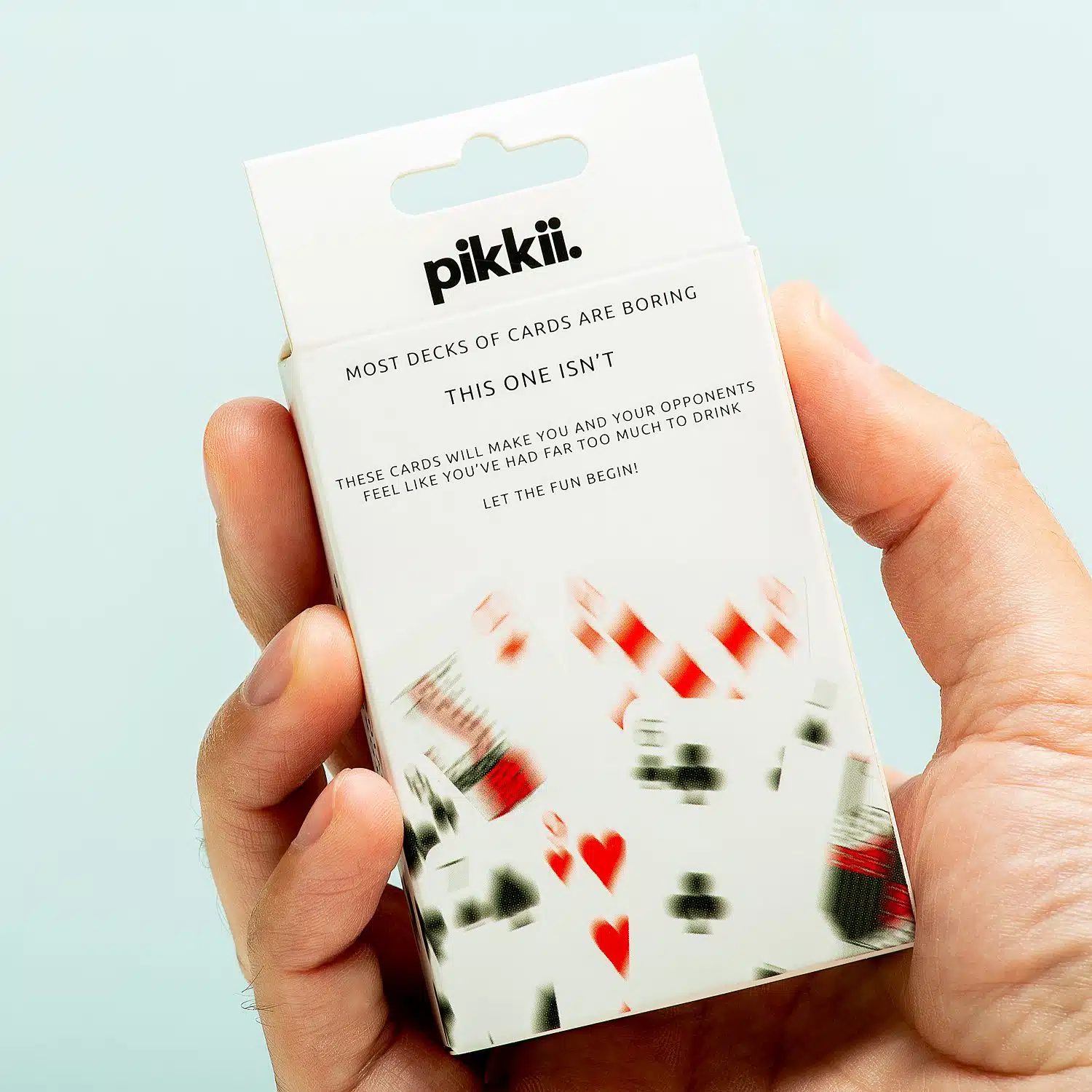 Veel kaartspellen zijn saai, maar het Dronken kaartspel van Pikkii zeker niet. Gebruik je deze kaarten, dan is het net alsof je al een heftige avond achter de rug hebt. De afbeeldingen en getallen op het kaartspel zijn namelijk heel wazig afgebeeld. Hierdoor is het net alsof je dronken bent. Lollig om te gebruiken aan het eind van een avondje drinken met vrienden.