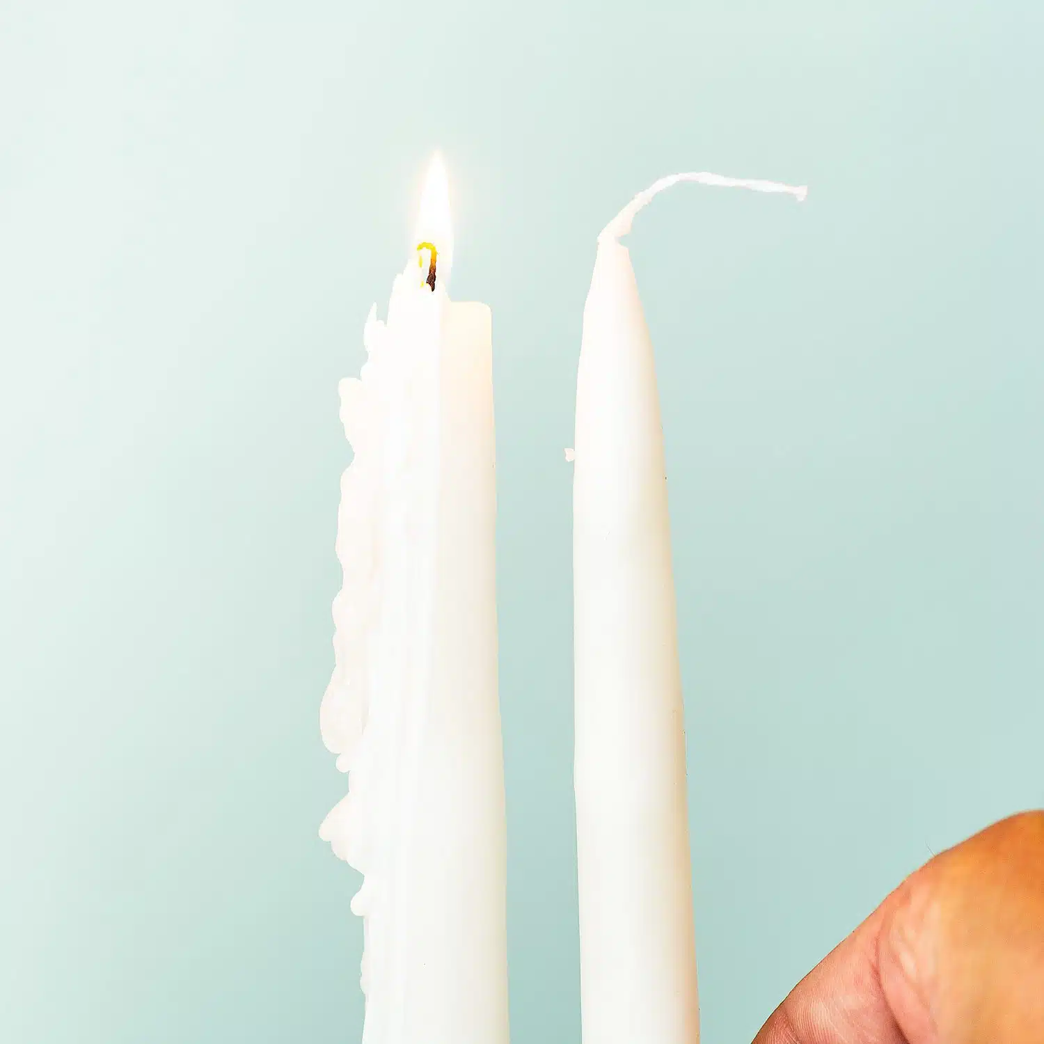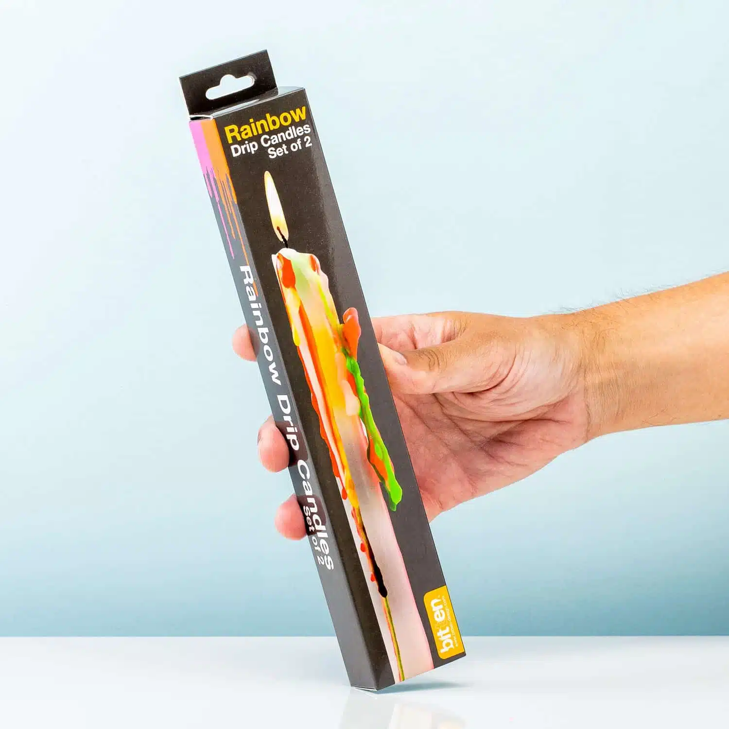 Van stijlvol zwart en neutraal wit tot kakelbonte regenboogkleuren: de Druipkaars (set van 2) van Bitten past in ieder huis! Of je nou dol bent op regenbogen – die ieders leven minder grauw maken – of liever kiest voor een chique kleur, deze druipkaarsen zijn altijd een succes. Zet ze in een kandelaar, steek ze aan en geniet van het kaarsvet dat naar beneden druipt. De regenboog kaars lijkt net op een smeltende eenhoorn, terwijl de witte kaarsen maagdelijk schijnen in je moderne interieur. En zwart? Dat kan eigenlijk altijd!