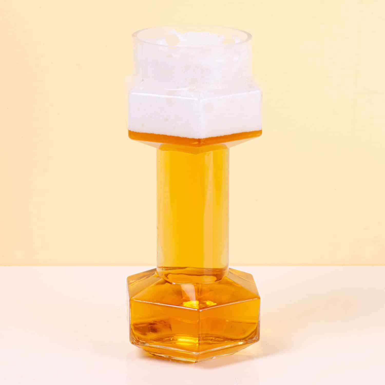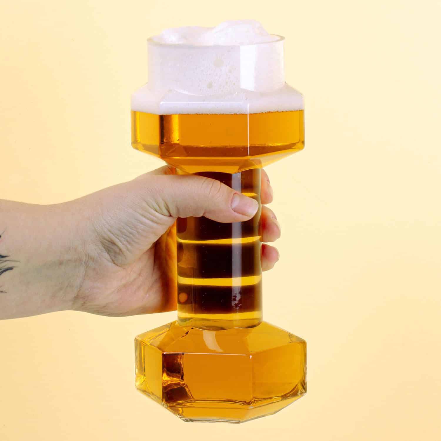 Combineer je hobby – fitness – met je favoriete drankje – bier – en je krijgt iets unieks: de Dumbbell bierpul van Out of the Blue. Een bierpul die eruitziet als een halter, maar waar je ook gewoon bier uit kunt drinken. De dumbbell heeft een flinke inhoud: er gaat maar liefst 700 milliliter bier in. Het is de leukste bierpul voor iedereen die wil trainen en drinken.