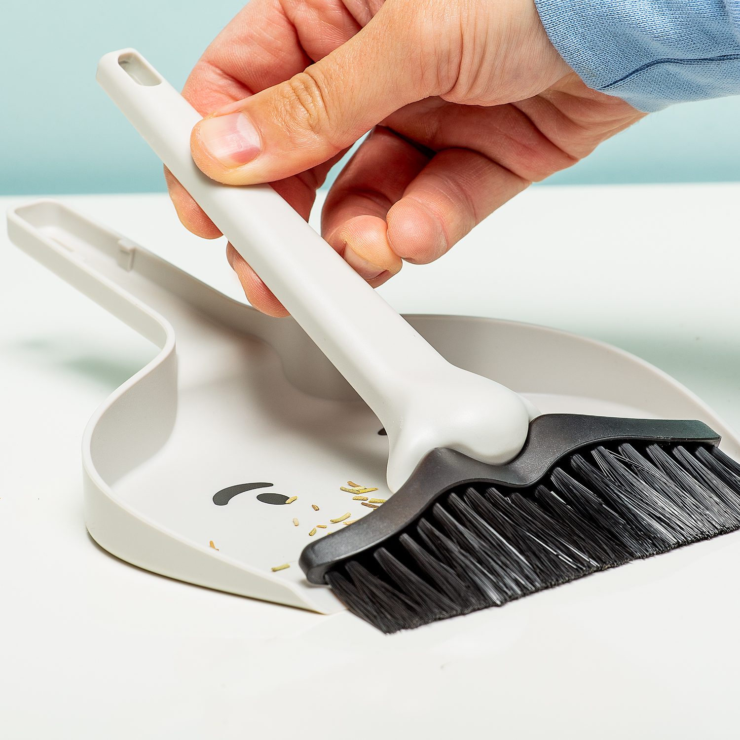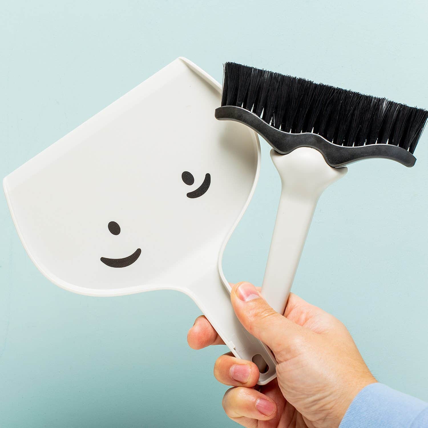 Combineer het saaie (het huishouden) met het aangename: de Dustache stoffer en blik van Peleg Design. Deze grappige en compacte stoffer en blik wil je vol in het zicht hangen in de bijkeuken. Het setje vormt namelijk een gezicht. De stoffer heeft een neus en snor, terwijl op het blik twee ogen staan. Dustache is niet bang om zijn stof vies te maken: dat is tenslotte zijn werk.