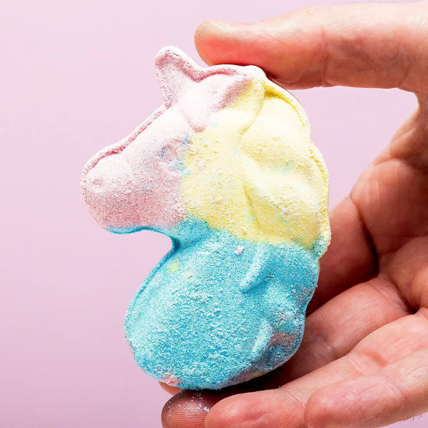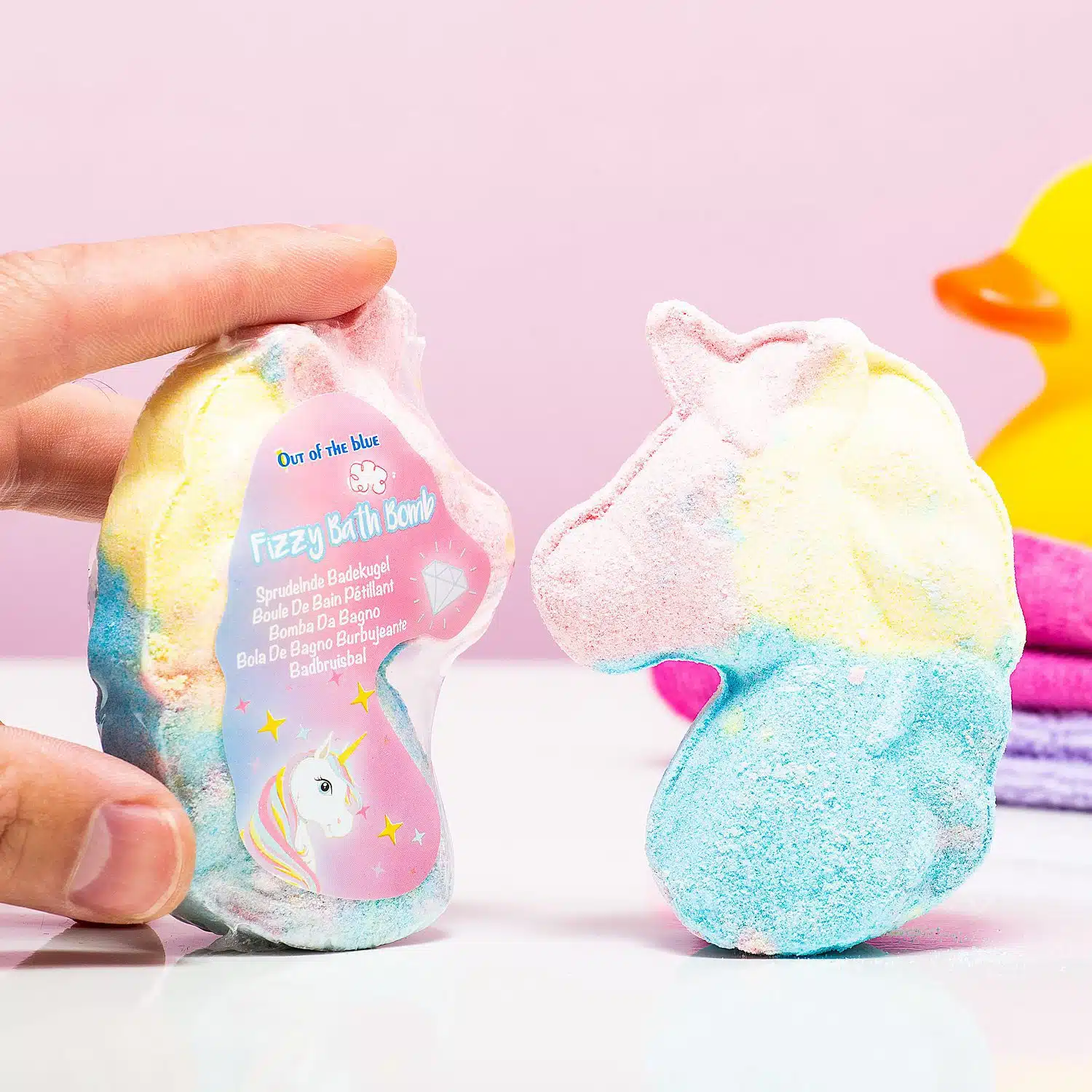 Ze hebben pastelkleuren, ruiken heerlijk en geven het dagelijks leven een tikje magie. We hebben het natuurlijk over eenhoorns. Geniet van die magie met de Eenhoorn bruisbal van Out of the Blue. Deze grote bruisbal geeft je badwater een snoepige kleur én geur. Gooi hem onder de stromende kraan in je bad voor het beste effect.
