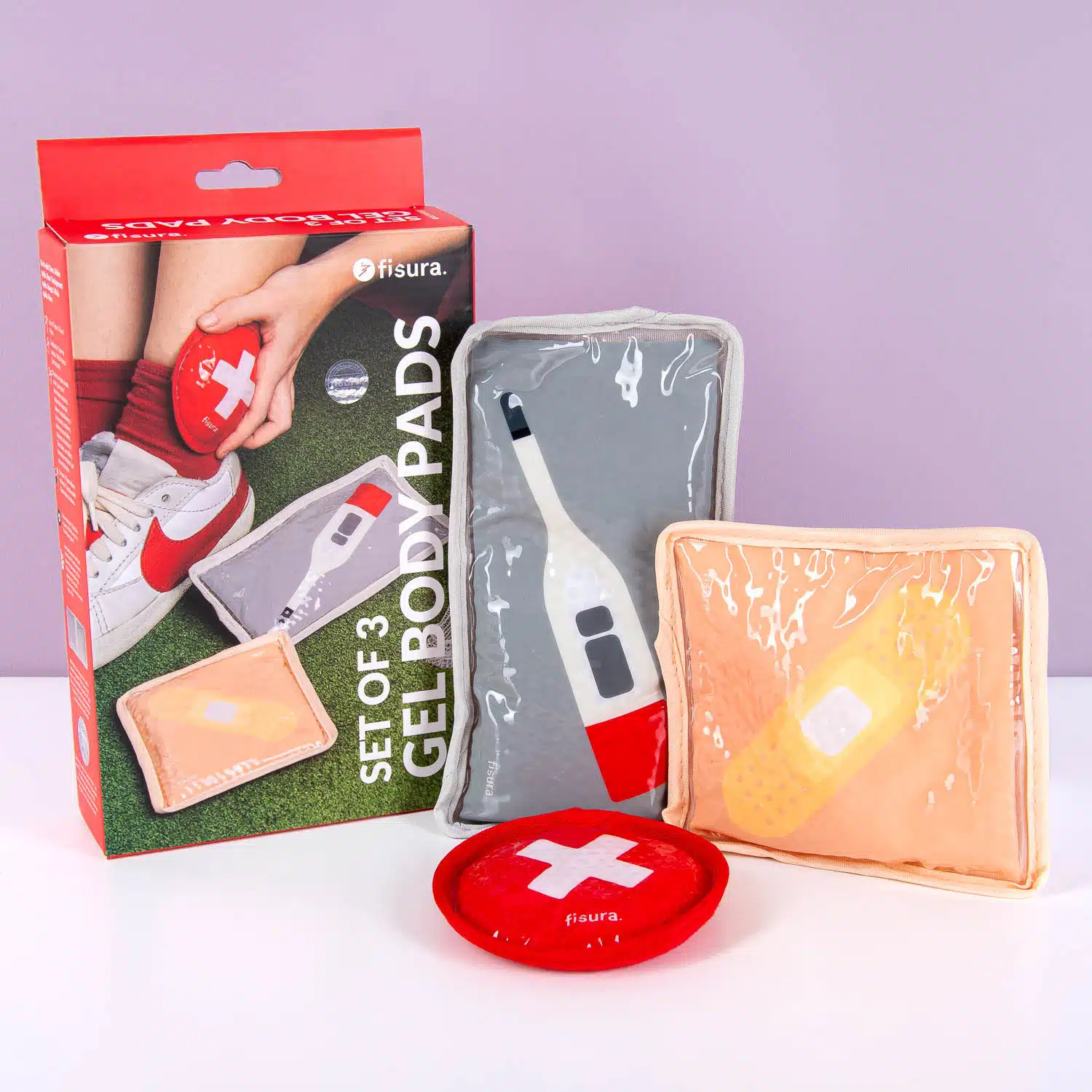 Een verrekte spier, buikkrampen of wallen onder je ogen verminder je snel, met de EHBO gelpacks (set van 3) van Fisura. Deze grappige hot-coldpacks zien eruit als een EHBO-kit. Ze zijn gevuld met gel en kunnen zowel warm als koud gebruikt worden. Ideaal als je je enkel hebt verzwikt en deze moet koelen, als je je hebt gestoten of last hebt van hoofdpijn.