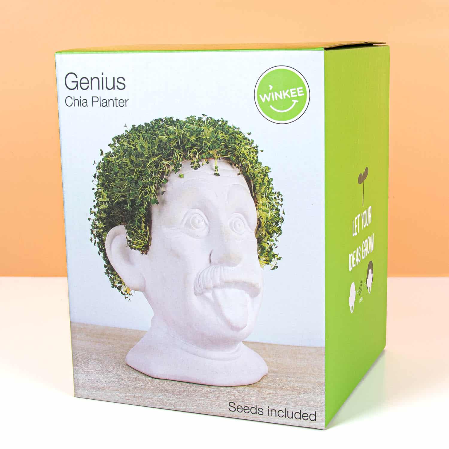De Einstein bloempot met zaadjes van Winkee is een keramische buste van Einstein die je kunt beplanten met de meegeleverde zaadjes. Strooi de zaadjes over zijn hoofd en kijk hoe zijn iconische wilde haar groeit! Na het oogsten kun je de buste keer op keer opnieuw beplanten met zaadjes naar keuze. Perfect cadeau voor wetenschapsfans, plantenliefhebbers of iedereen die van een beetje humor houdt.