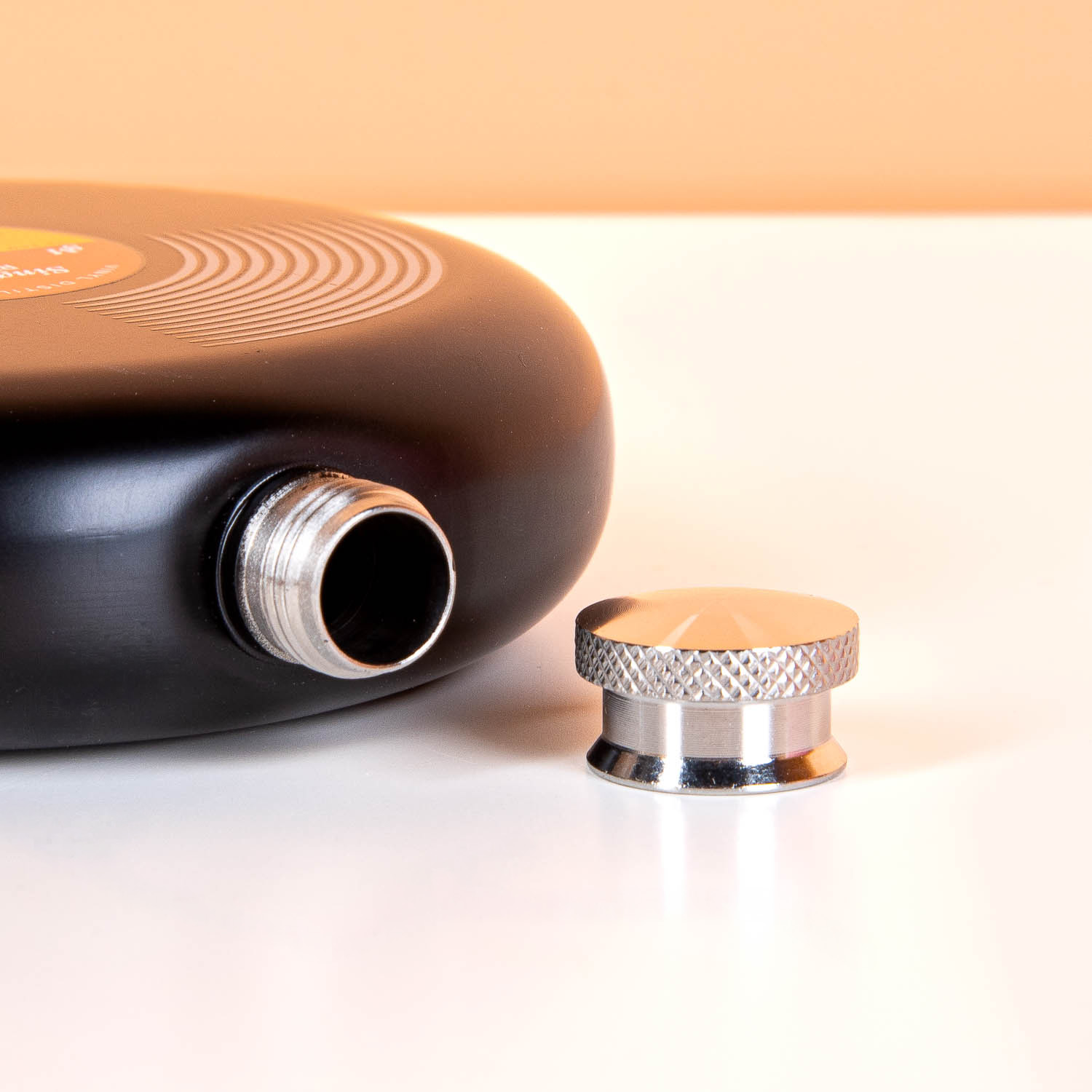 • Roestvrijstalen heupflacon die lijkt op een elpee