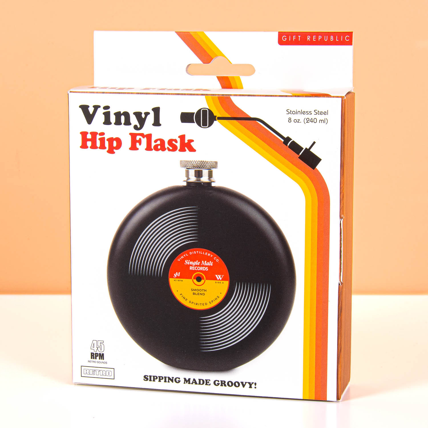 Wat is er leuker dan een festival? Een festival met je eigen drank bij de hand! Elpee heupflacon van Gift Republic is er voor iedereen die van muziek houdt én van een drankje onderweg. Deze roestvrijstalen heupflacon lijkt op een elpee en heeft een inhoud van 240 milliliter: perfect om je whiskey of gin te delen met je vrienden op festivals, vakantie of feestjes.