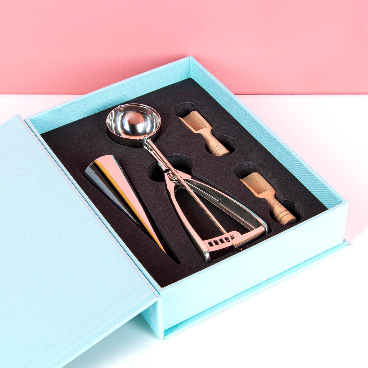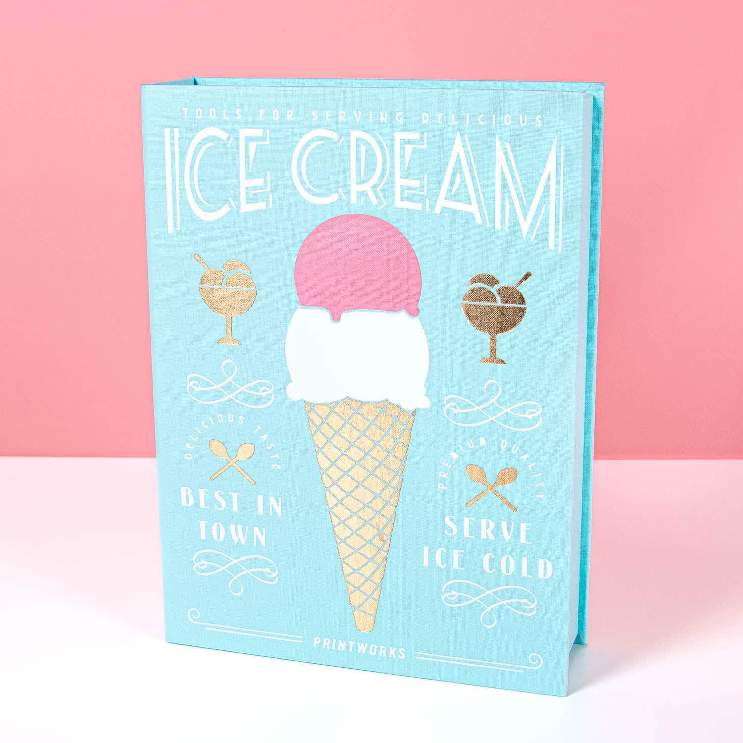 Het Essentials boek met ijs tools van Printworks is een complete set voor het perfecte ijsfeestje, vermomd als elegant boek. Open het en ontdek alle essentials die je nodig hebt om thuis ijsjes te maken. Perfect voor warme zomerdagen, kinderfeestjes of gewoon omdat zelfgemaakt ijs beter smaakt. Als je hem niet gebruikt, staat hij mooi tussen je kookboeken. Ideaal cadeau voor ijsliefhebbers en foodies!