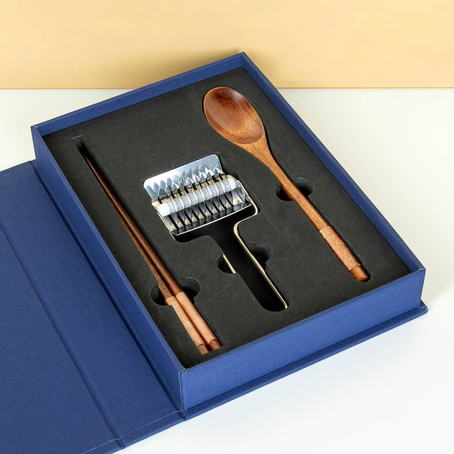 • Inclusief noedelsnijder, 2 ramenlepels en 2 sets eetstokjes