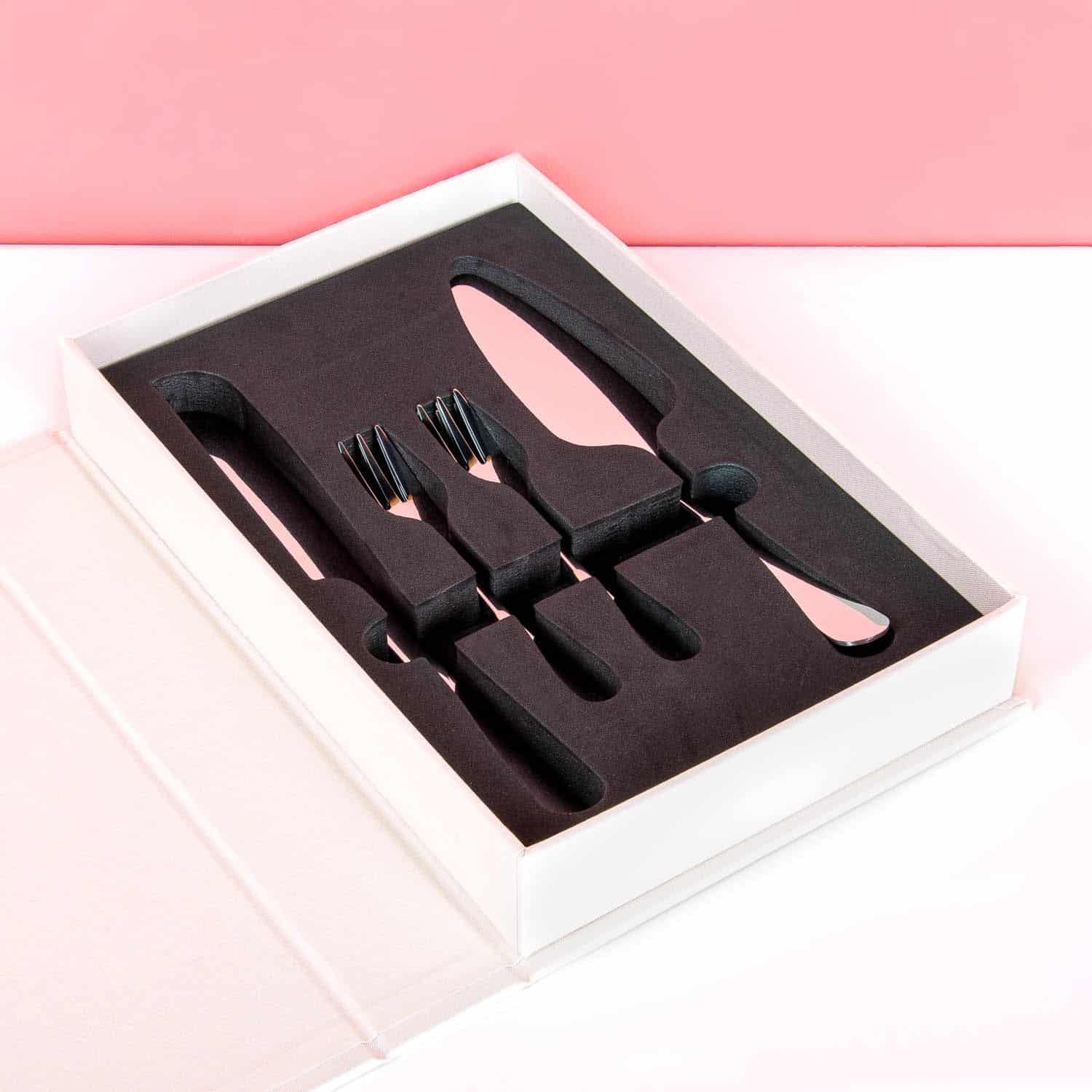 Het Essentials boek met taart tools van Printworks is een complete taart serveer set, chique verpakt in boekvorm. Open je het boek, dan vind je een taartspatel, taartmes en zes dessertvorken; alles wat je nodig hebt om stijlvol taart te serveren. Als je hem niet gebruikt, staat hij prachtig tussen je kookboeken. Perfect voor feestjes, high tea, verjaardagen of gewoon als je je gasten wilt verwennen met een chique taartmoment!
