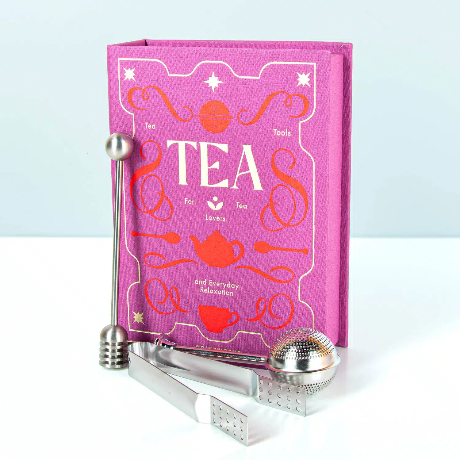 Het Essentials boek met thee tools van Printworks is een complete theeset, chique verpakt in boekvorm. Open je het boek, dan vind je een theetang, thee infuser en honinglepel; alles wat je nodig hebt voor het perfecte kopje thee. De theetang pakt je theezakjes vast zonder je vingers te verbranden, de infuser is perfect voor losse thee en met de honinglepel voeg je gemakkelijk honing toe zonder rommel. Als je hem niet gebruikt, staat hij prachtig tussen je kookboeken. Perfect cadeau voor je moeder en andere theeliefhebbers!