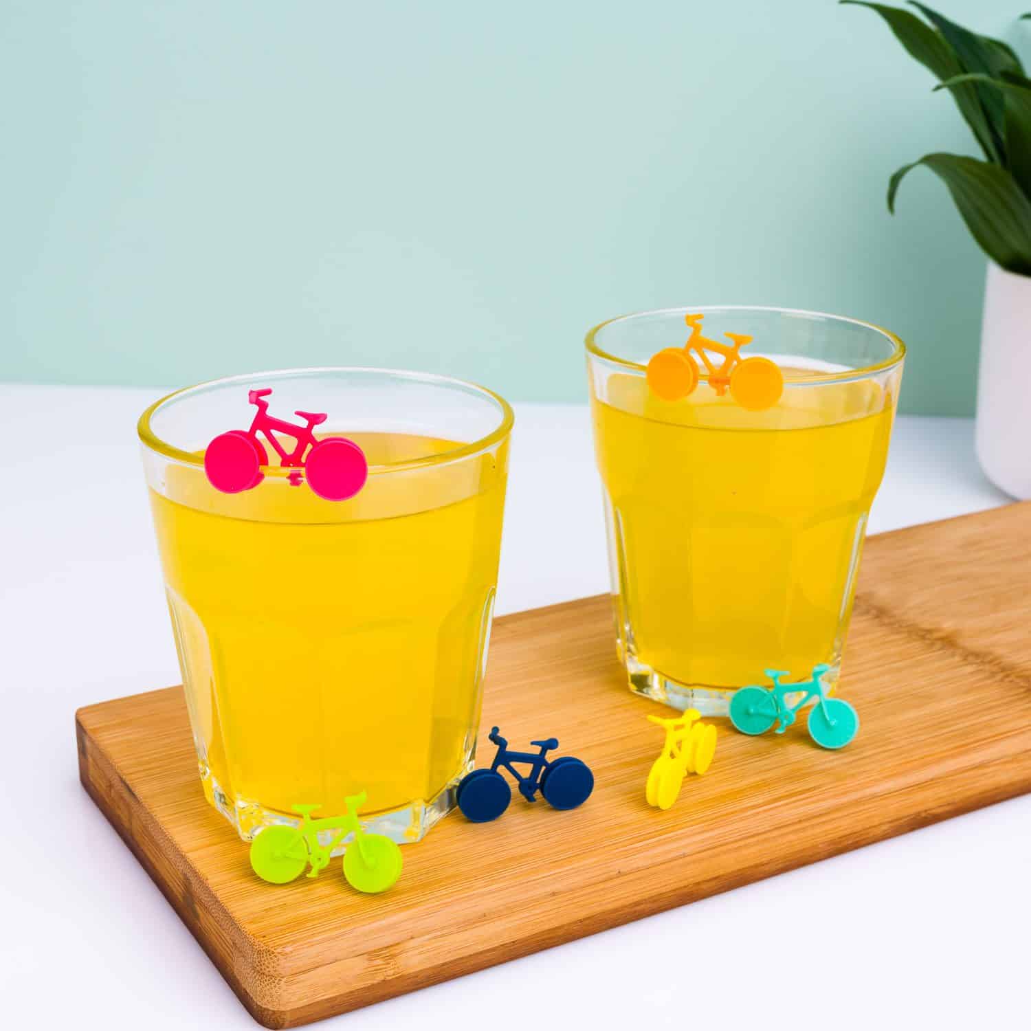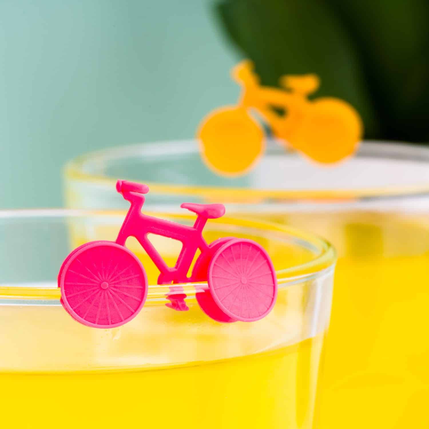 Is fietsen jouw hobby? Nodig je je fietsvakantie-maatjes graag uit voor een drankje? Met de Fiets glasmarkeerders (set van 6) van Winkee hoef je niet meer bang te zijn dat iemand per ongeluk uit het verkeerde glas drinkt. De set bestaat uit zes gekleurde fietsen van siliconen die je gebruikt om de glazen uit elkaar te houden. Het fietsje is eenvoudig vast te maken aan je glas. Het enige wat je hoeft te doen is jouw kleur onthouden.