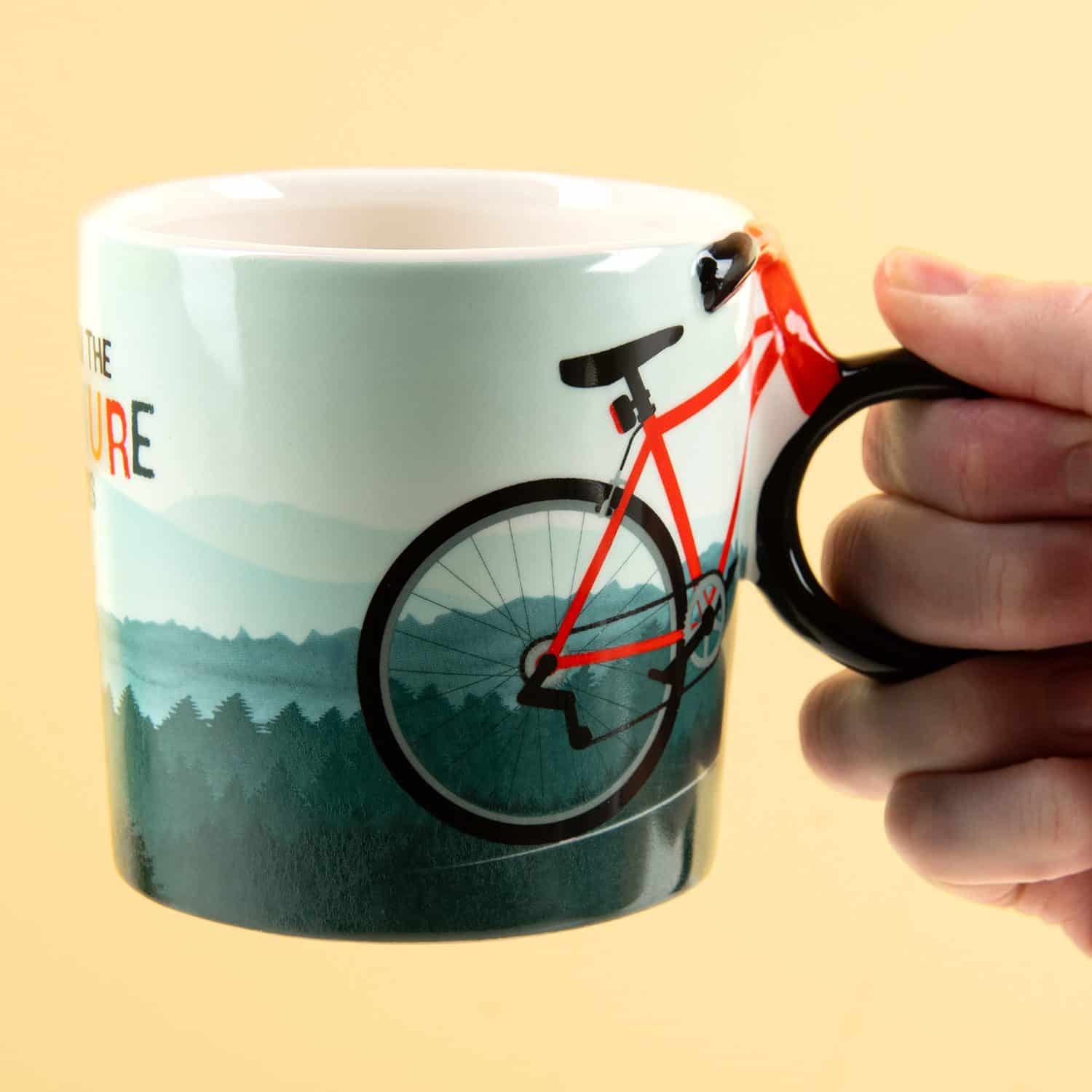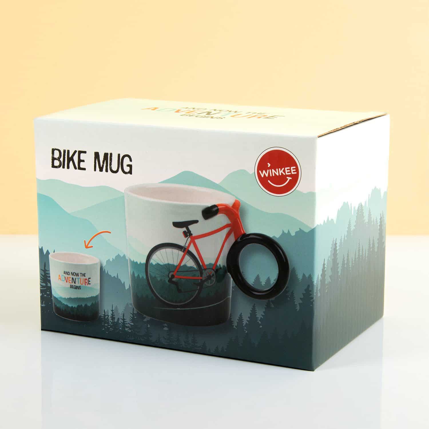 Ben jij altijd in voor een avontuur? Dan past de Fiets mok van Winkee goed bij jou. Deze leuke mok heeft een uniek oor: dit is namelijk het voorwiel van de fiets die op de mok staat. De bergachtige achtergrond zorgt ervoor dat je direct zin krijgt om je volgende avontuur te beleven. Op de achterkant van de beker staat dan ook de tekst: And now the adventure begins.