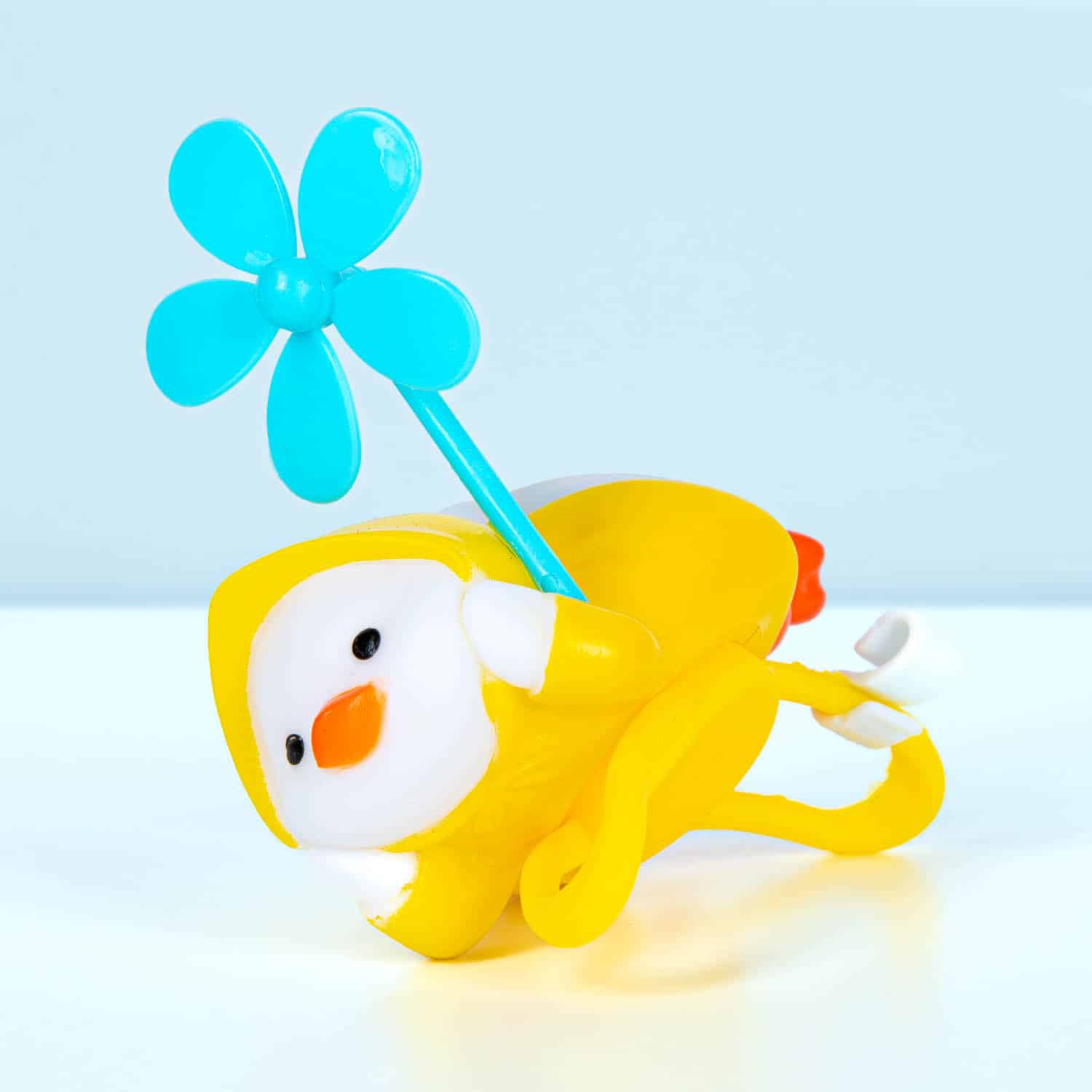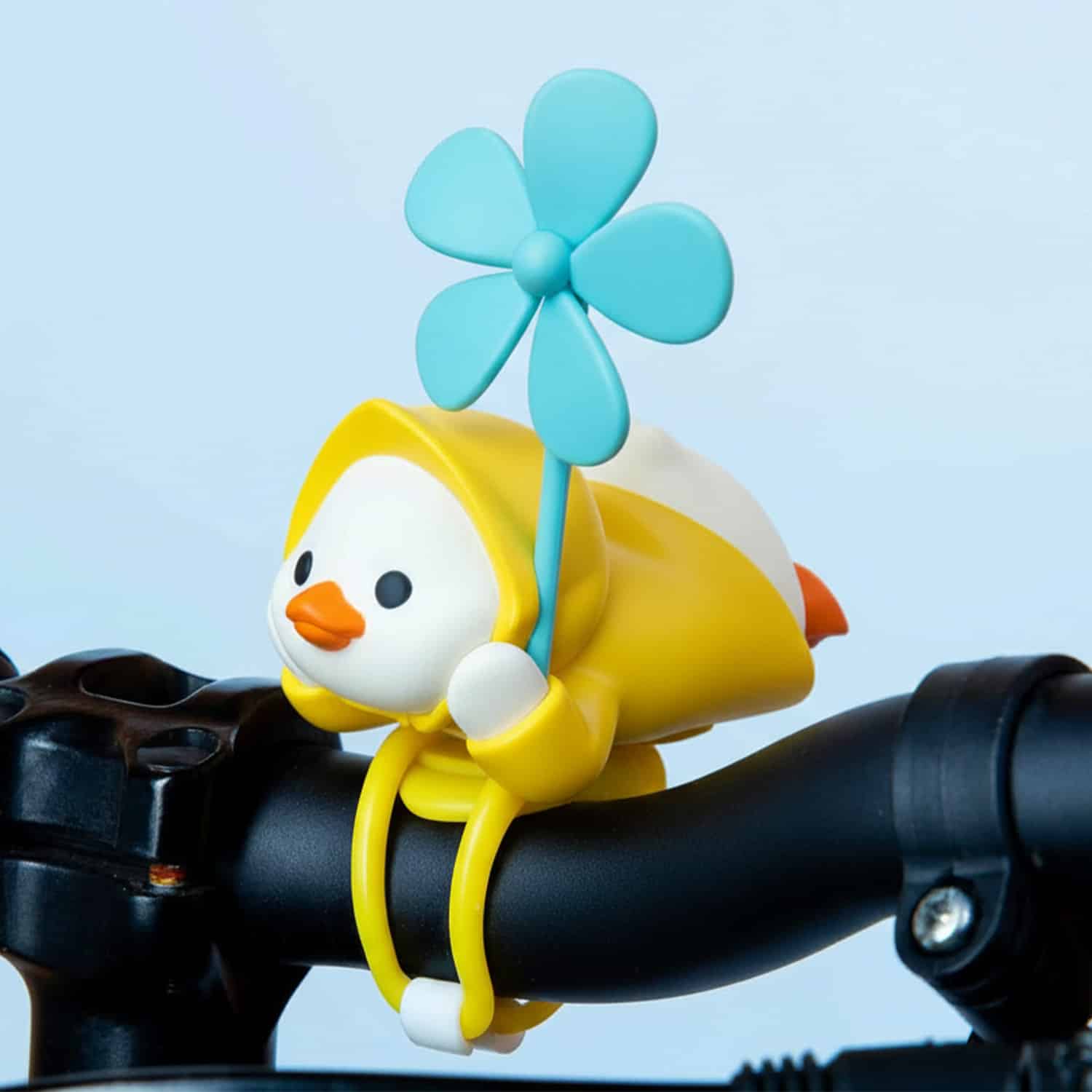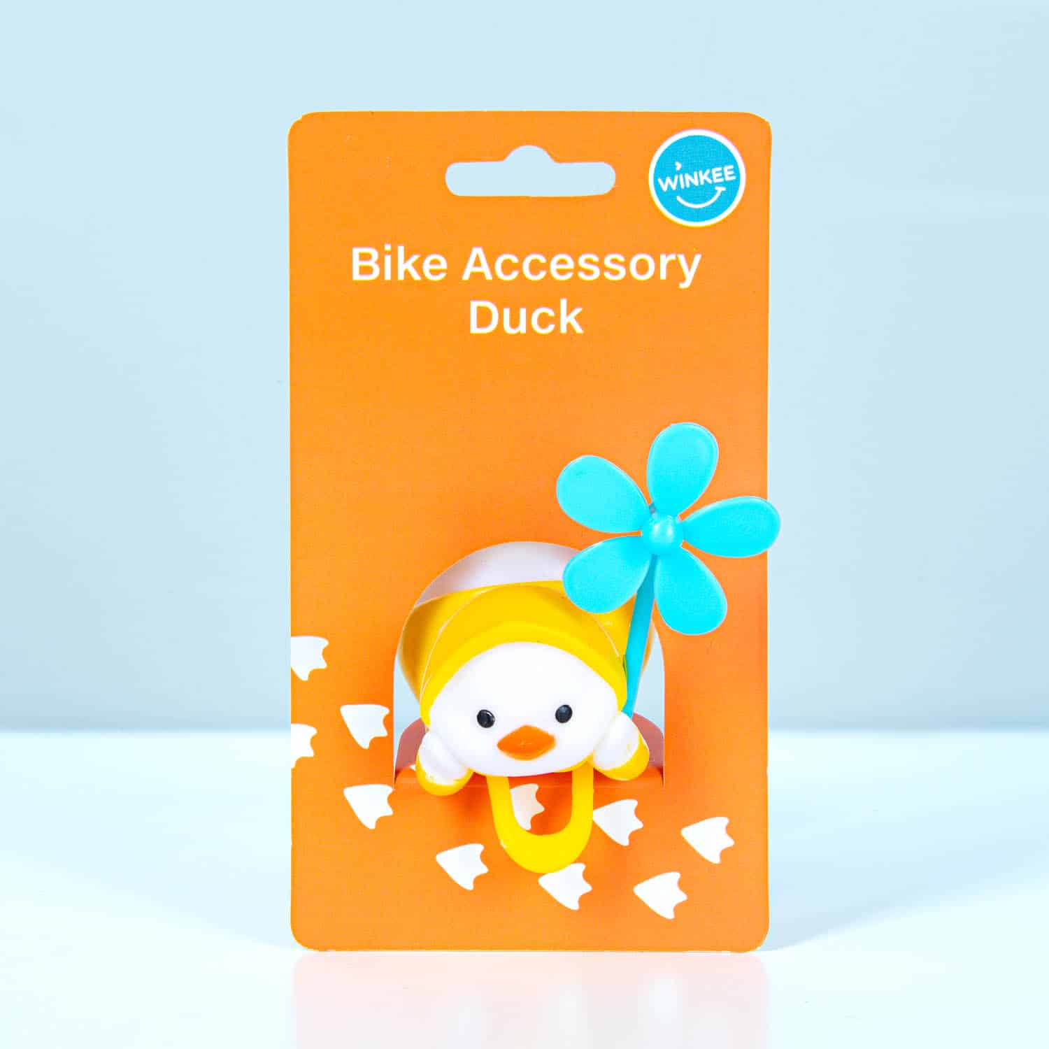 Het Fietsstuur eendje van Winkee is een schattig geel eendje met regenjasje dat je aan je stuur bevestigt. Het eendje heeft een windmolentje vast dat echt draait als je fietst. Past op elk fietsstuur en maakt elke fietstocht vrolijker. Perfect cadeau voor kinderen of iedereen die van leuke fietsaccessoires houdt. Want fietsen zonder eendje is gewoon saai!