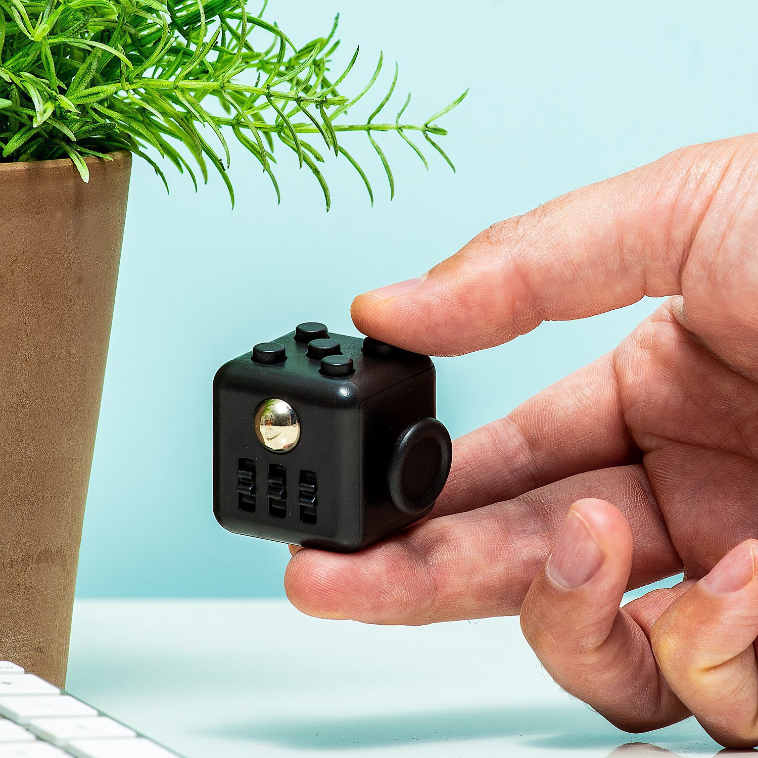 Voel je je gestresst of gespannen? Dan is de Finger Cube is het ideale maatje voor jou. Het kleine kubusje heeft allerlei knopjes en wieltjes om eindeloos op te drukken, aan te draaien of in te knijpen. Iedere zijde heeft weer andere knopjes. Door het maken van deze kleine bewegingen, kun je je gedachten beter verzetten en daalt het gehalte aan stresshormonen in je lichaam. De kleine fidget kubus past precies in je hand en neem je gemakkelijk overal mee naar toe.