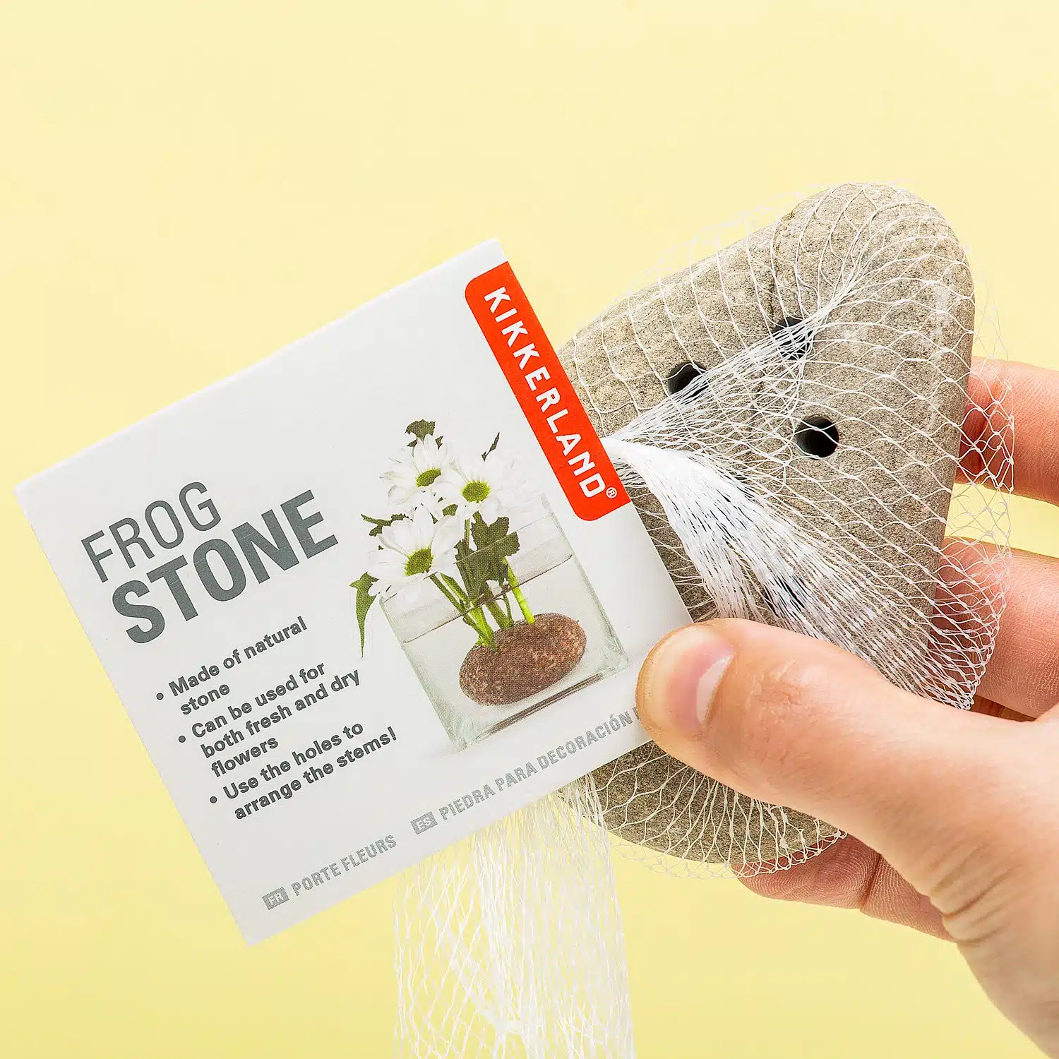 Maak van een boeket bloemen een echte eyecatcher, met de Frog Stone bloemschiksteen van Kikkerland. Een flower frog of frog stone is een hulpmiddel bij Ikebana: een Japanse vorm van bloemschikken. De steen wordt op de bodem van een vaas gelegd, waarna de bloemstelen in de gaten worden gestoken. Op deze manier blijven de bloemen perfect op hun plek. De frog stone is extra mooi als je hem in een transparante vaas gebruikt, omdat je de steen dan ook ziet.