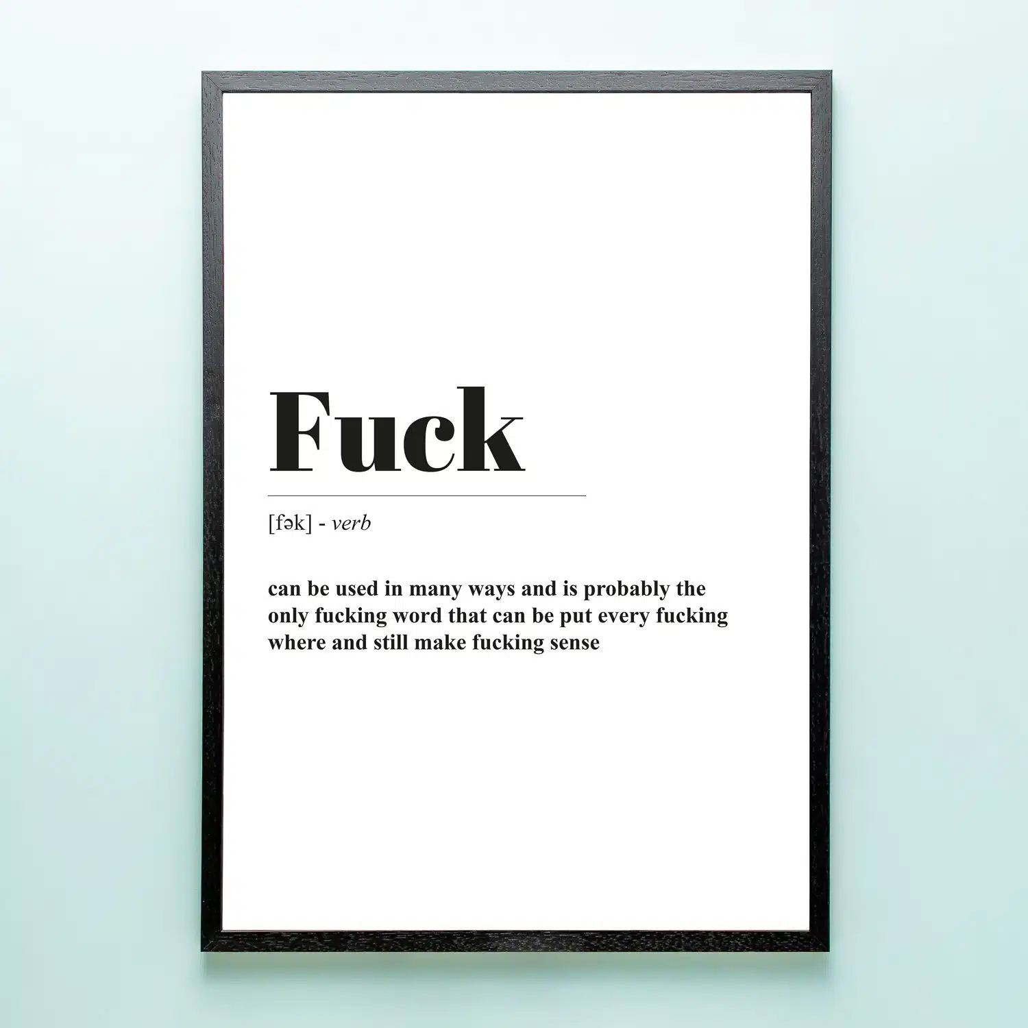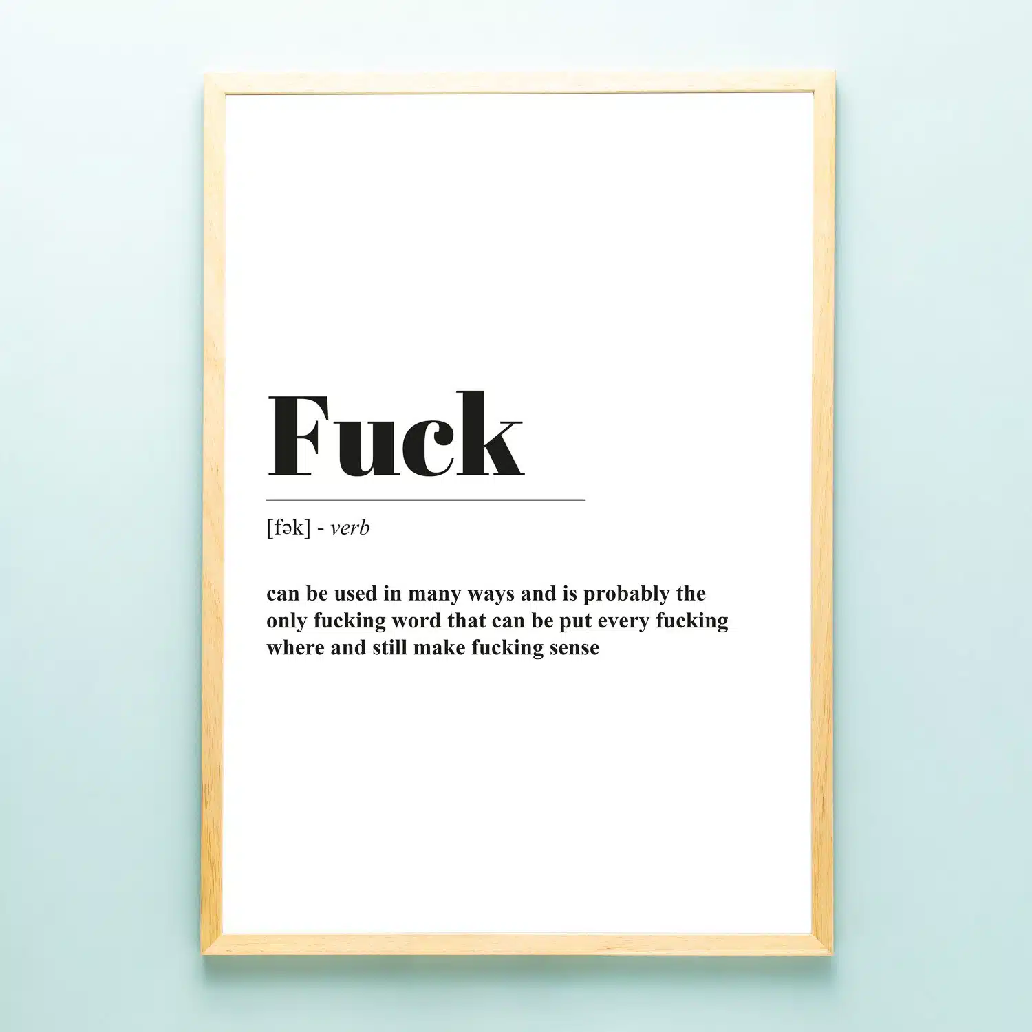 Gebruik jij het woord fuck te pas en te onpas? Dat is heel normaal, blijkt wel uit de Fuck poster. Op de poster staat de tekst: Fuck. Can be used in many ways and is probably the only fucking word that can be put every fucking where and still make fucking sense. Originele poster voor types die niet bang zijn om zich uit te spreken. Leverbaar met of zonder lijst in zwart of blank hout.
