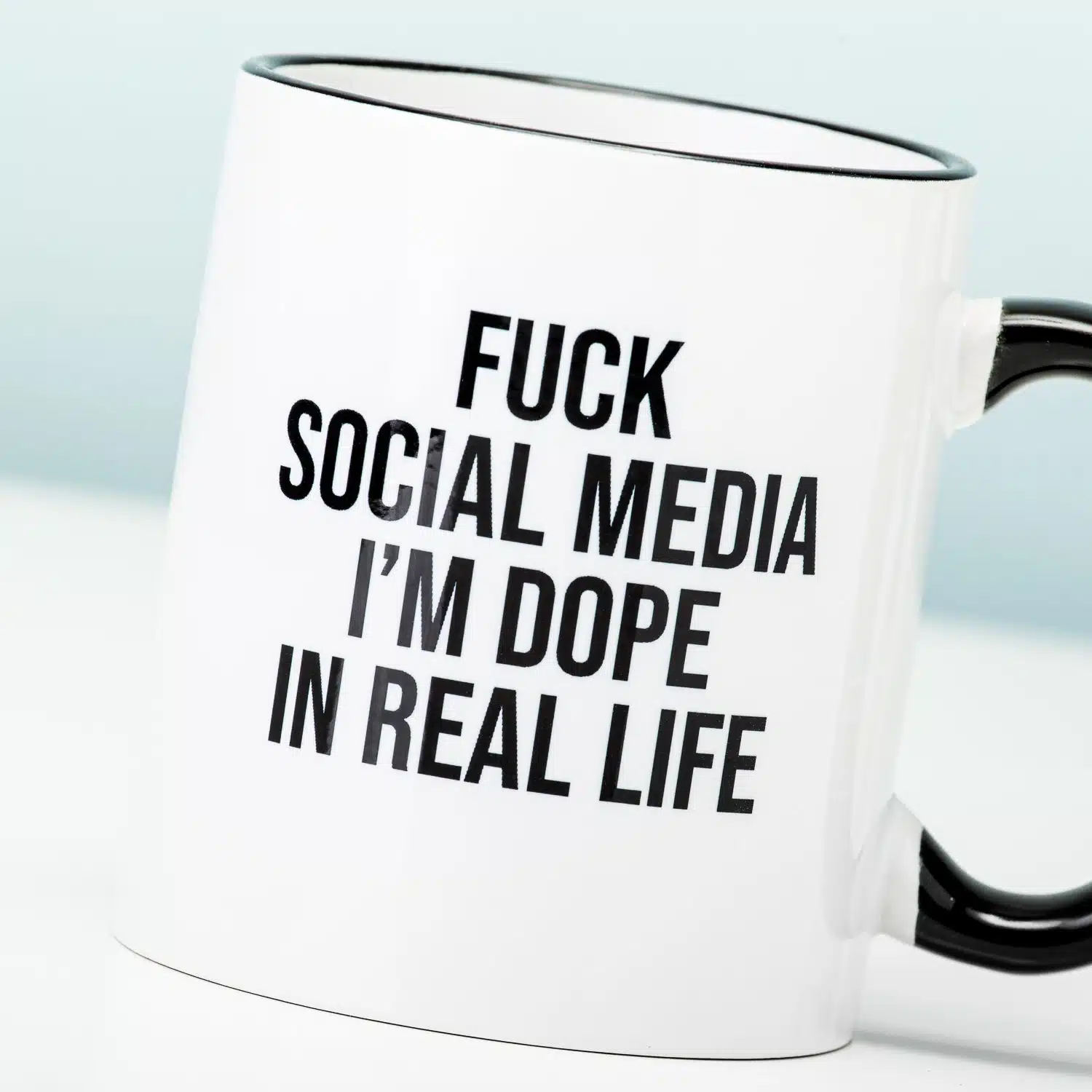 Kun jij al die perfecte plaatjes op social media niet uitstaan? Of wil je makkelijk scoren? Plaats dan een foto van jezelf met de Fuck social media mok. Deze originele beker is voorzien van de tekst: Fuck social media, I’m dope in real life. Of je hem nu als een grap koopt of heel serieus bent over je afwezigheid op social media: deze mok is een hit.
