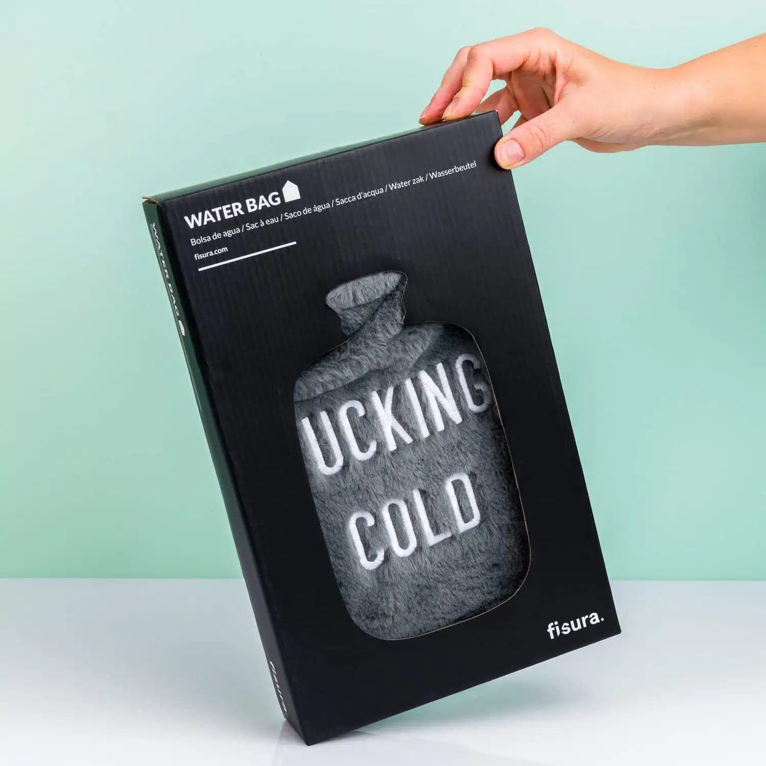 De hele winter rillend van de kou op de bank? Niet met de Fucking Cold kruik van Fisura! Hoe koud het ook wordt, jij blijft lekker warm met deze knuffelige kruik op schoot. De kruik heeft een zachte hoes met de tekst Fucking Cold. Ideaal als je de verwarming niet te hoog wilt zetten of als je je bed eenvoudig wilt verwarmen.