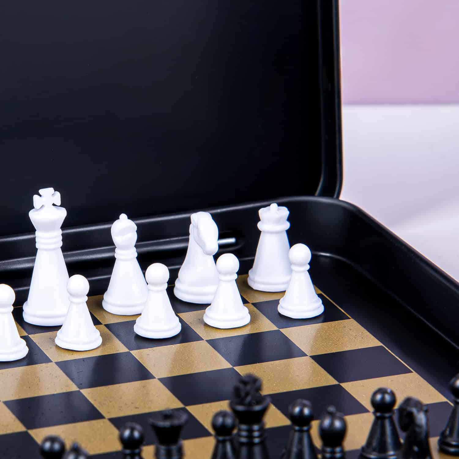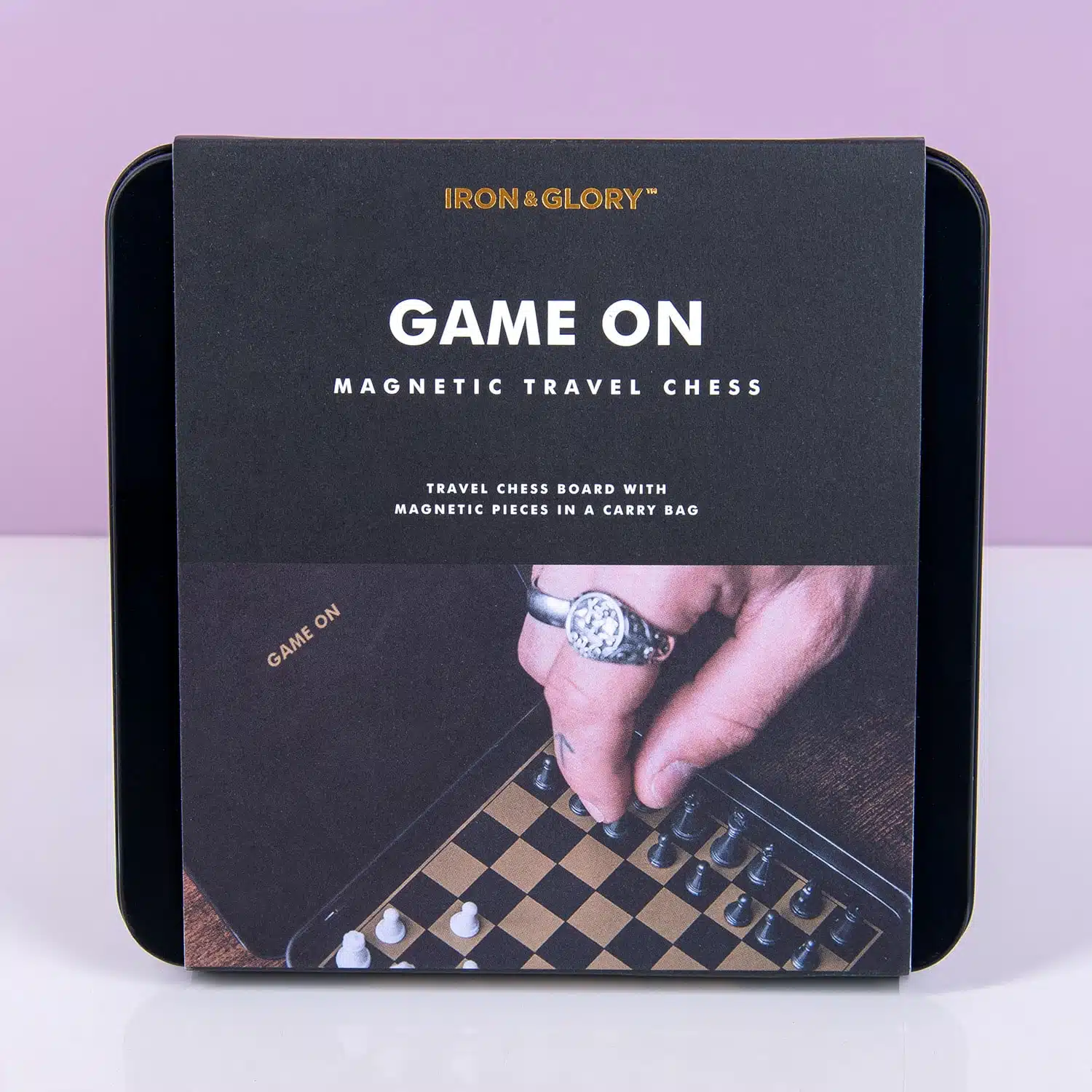 Of je nu thuis bent, in een restaurant of gewoon op vakantie, je laat je graag van je beste kant zien. Dus vergeet de goedkope reisspelletjes: jij gaat voor chic. De Game On magnetische schaakset van Iron & Glory past daarom perfect bij jou. Dit is een tinnen blikje met aan de binnenkant een schaakbord. De schaakstukken zijn magnetisch en blijven daarom stevig op het bord staan. En ben je uitgespeeld, dan berg je ze gewoon op in het luxe velvet opbergzakje.