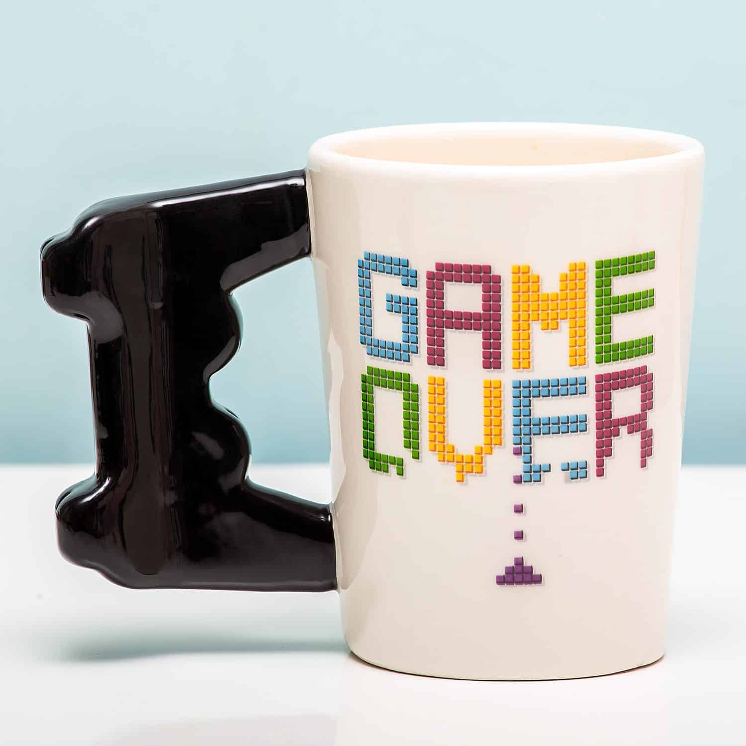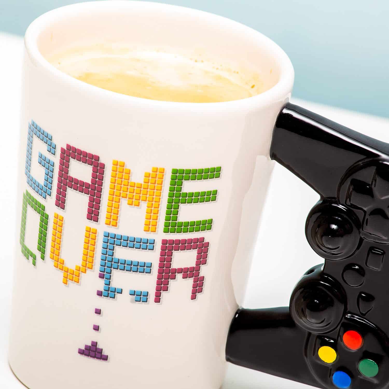 Blijf jij altijd veel te lang gamen en kruip je na een lange avond uitgedroogd achter je computer vandaan? Dat kan anders! Met de Game Over controller mok bijvoorbeeld. Deze originele mok heeft een oor die lijkt op de controller van een game console. Op de mok staat de tekst Game Over.