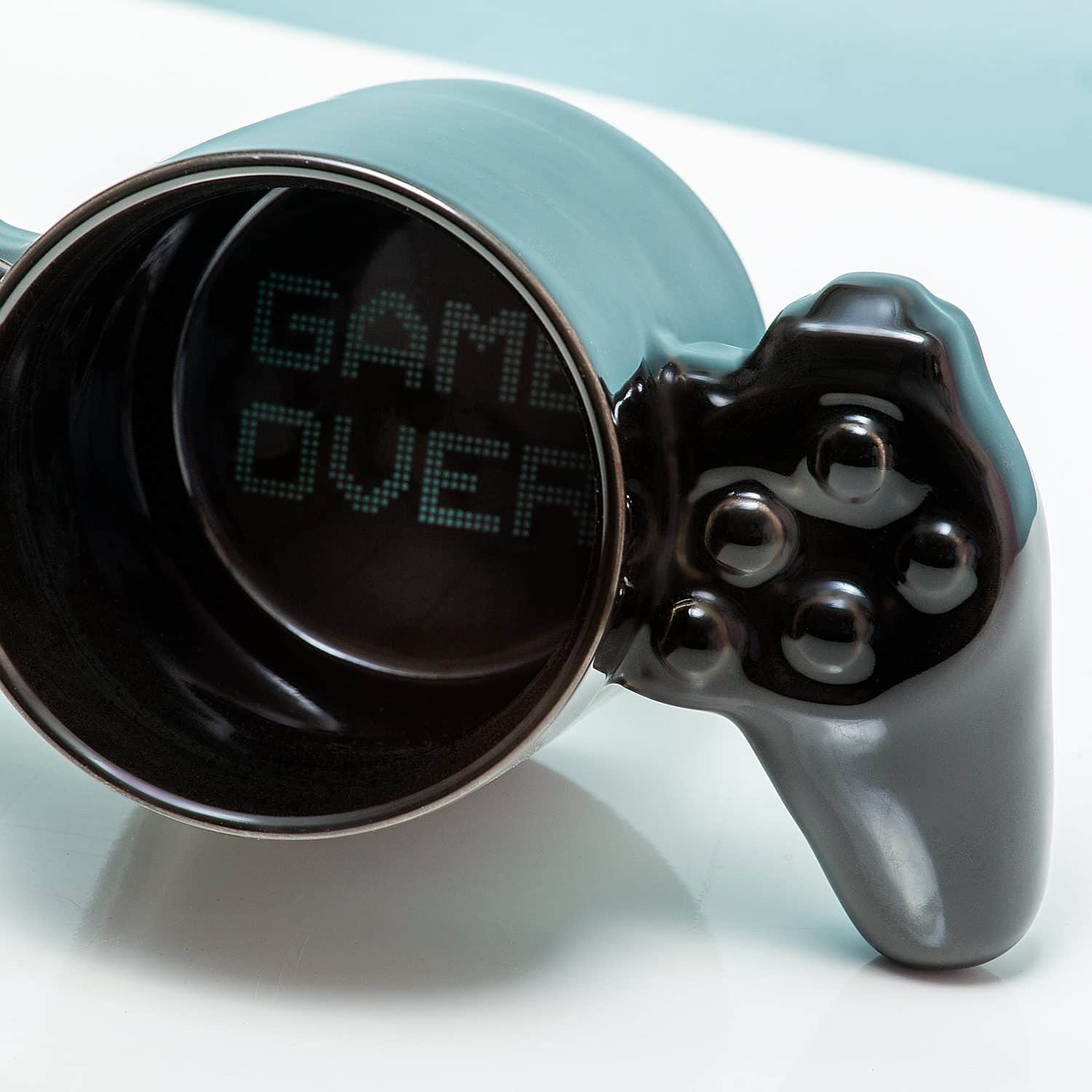 Ben jij gek op gamen en drink jij tijdens het gamen het liefst sloten koffie, zodat je nog even door kunt spelen? Dan is de Game Over mok een super leuke mok voor jou. Deze mok heeft handvaten die eruit zien als een controller en op de bodem staat ‘game over’. Het is dus duidelijk wanneer jouw koffie op is en je moet bijvullen. De Game Over mok is een super origineel cadeau voor gamers. Zodra de koffie of een ander drankje op is, dan zie je de woorden game over. Hoogste tijd om even pauze te nemen dus en om de mok gewoon weer even te vullen.