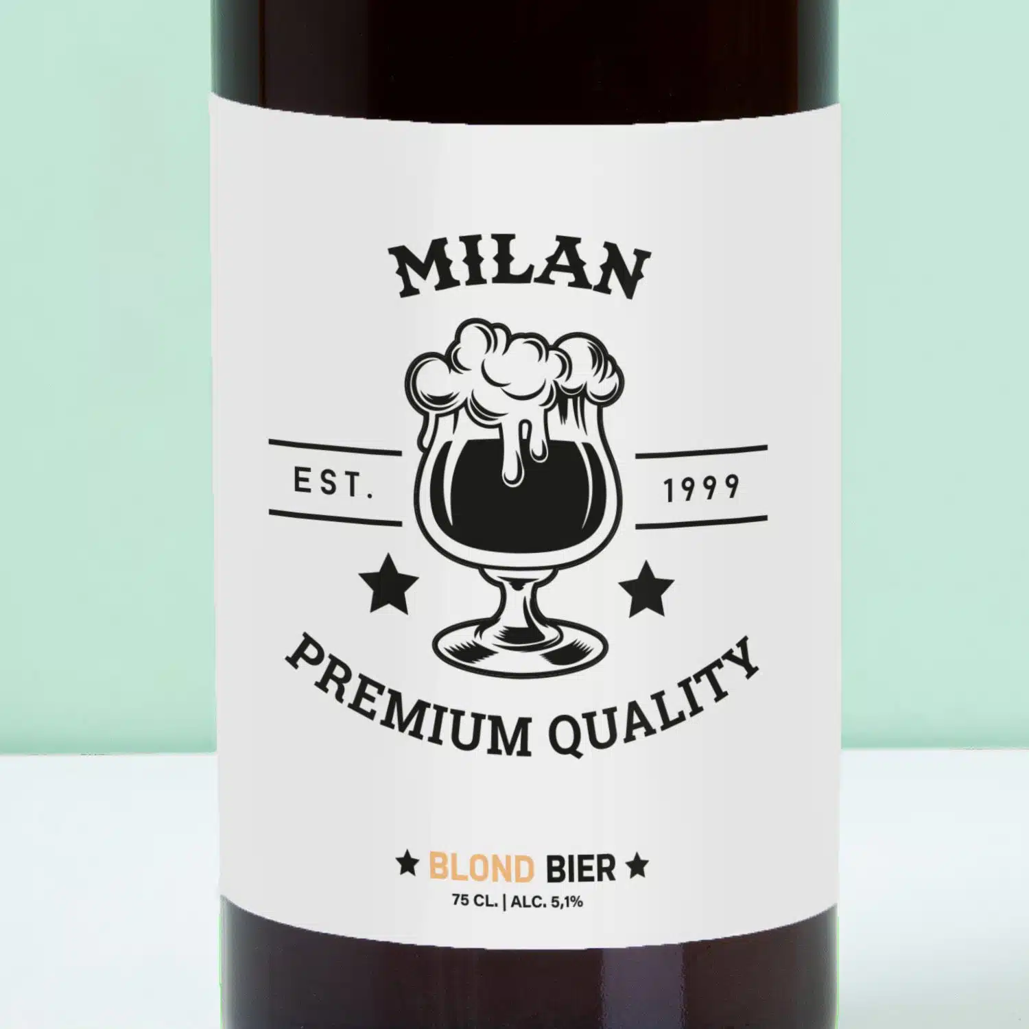 Jouw vader is een levende legende en dat mag gevierd worden! En dat geldt natuurlijk ook voor je stoere tante, lieve partner en je beste vriend. Als diegene houdt van Belgisch bier, ga dan voor de Gepersonaliseerde bierfles Naam badge luxe. Op het etiket van de gepersonaliseerde bierfles worden de naam en het geboortejaar van de ontvanger gedrukt. Daaronder staat de tekst: premium quality.