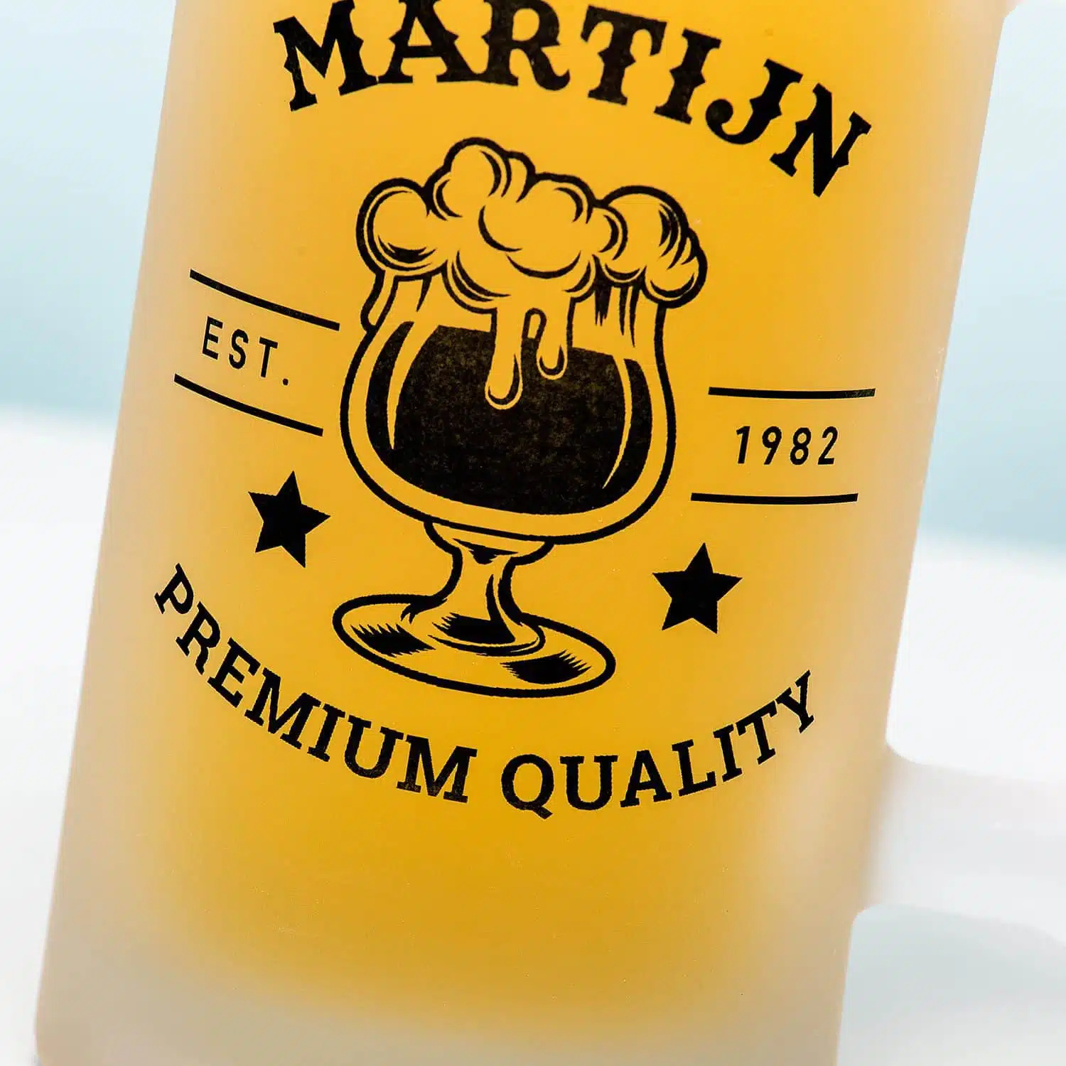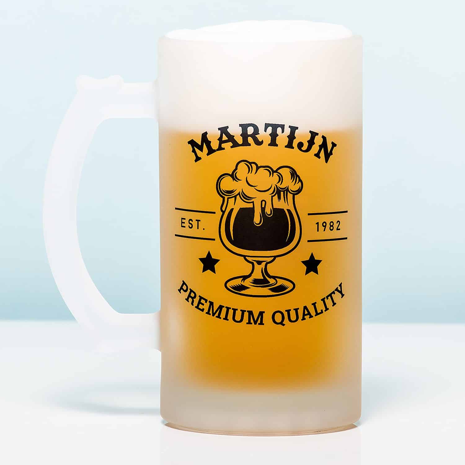Jij bent geboren in 1990 en dat jaar heeft heel wat premium quality mensen opgeleverd. Jou, bijvoorbeeld. Met de Gepersonaliseerde bierpul Naam badge luxe, maak je een bierpul voor jezelf of beste vriend. De bierpul is gemaakt van gematteerd glas en is dubbelzijdig bedrukt met een grote badge. Daarop staat jouw naam, je geboortejaar en de tekst Premium Quality. Geef je dit bierglas cadeau aan je pa voor Vaderdag? Dan kun je bijvoorbeeld ook ‘Papa Jos’ in plaats van alleen zijn naam op de bierpul laten zetten.