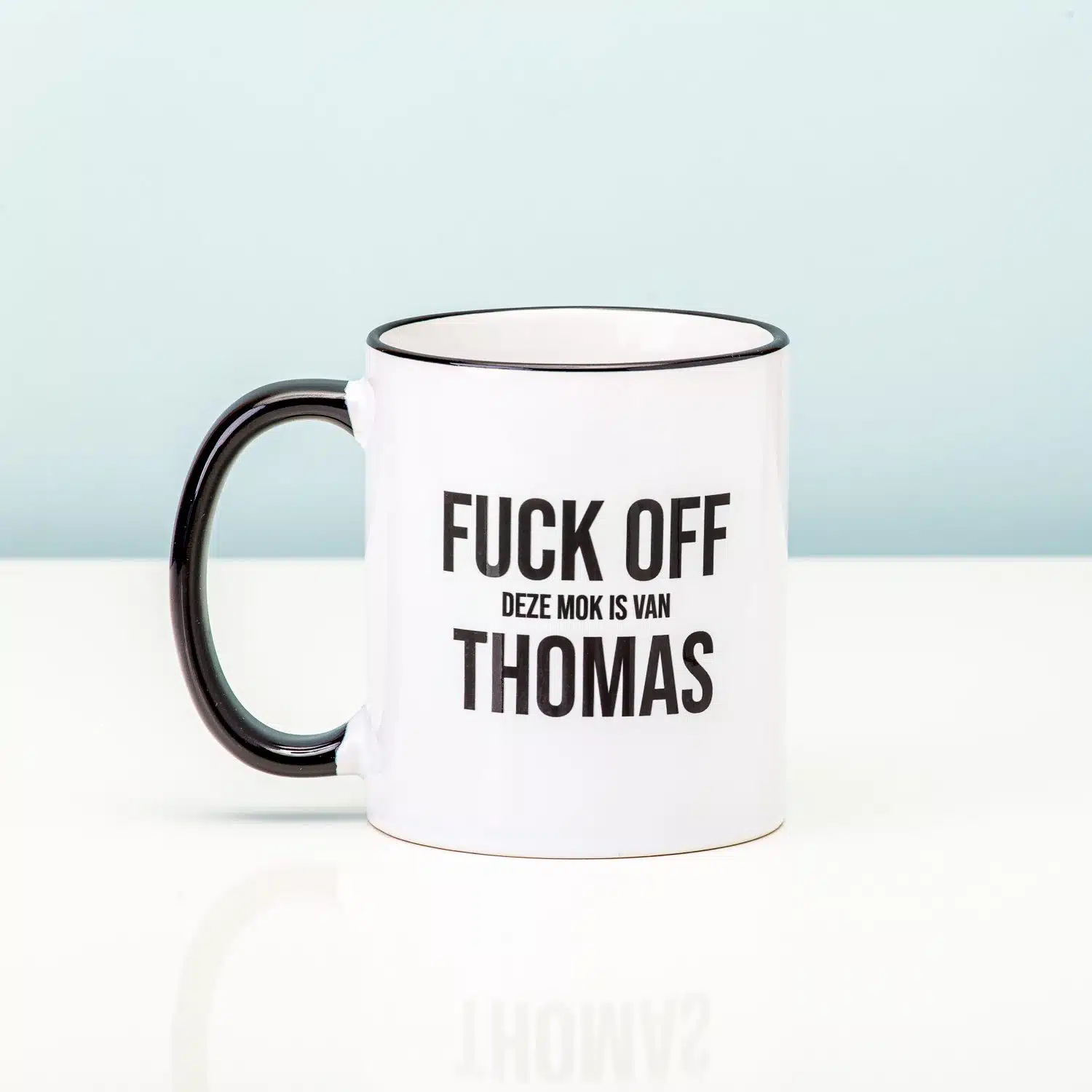 - Met de tekst: Fuck Off Deze mok is van …