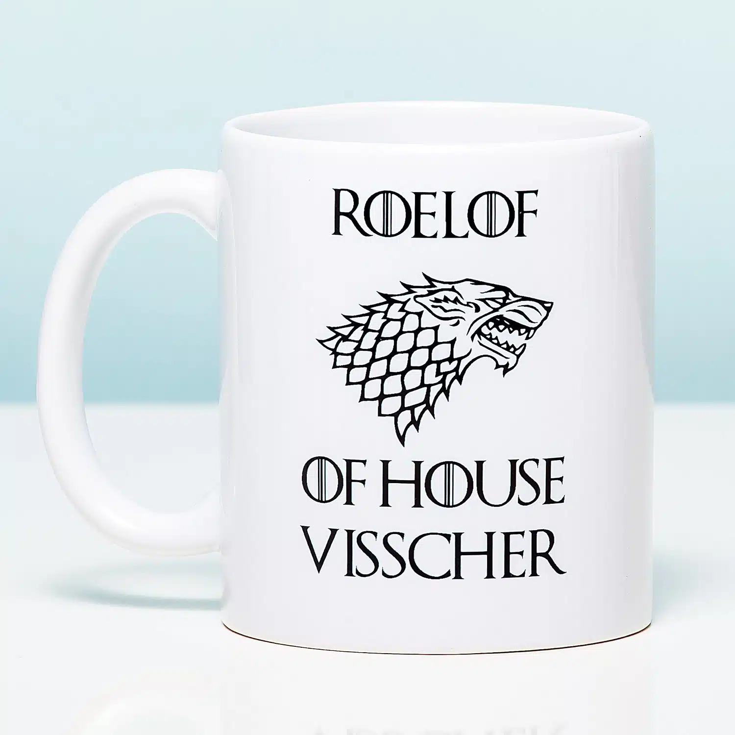 Kun jij je de tijd nog herinneren waarin je geen Game of Thrones keek? Nee, wij ook niet! En we hebben goed nieuws voor je, want nu kun je uit je eigen Game of Thrones beker drinken terwijl je je favoriete serie kijkt. Met de Gepersonaliseerde mok Game of Thrones House of ontvang je een mok met jouw voor- en achternaam en de bekende Stark sigil. Goedemorgen, ik ben Tim of House Mulder. Welke fan wil dat nou niet? Ook een perfect cadeautje voor mede-fans!