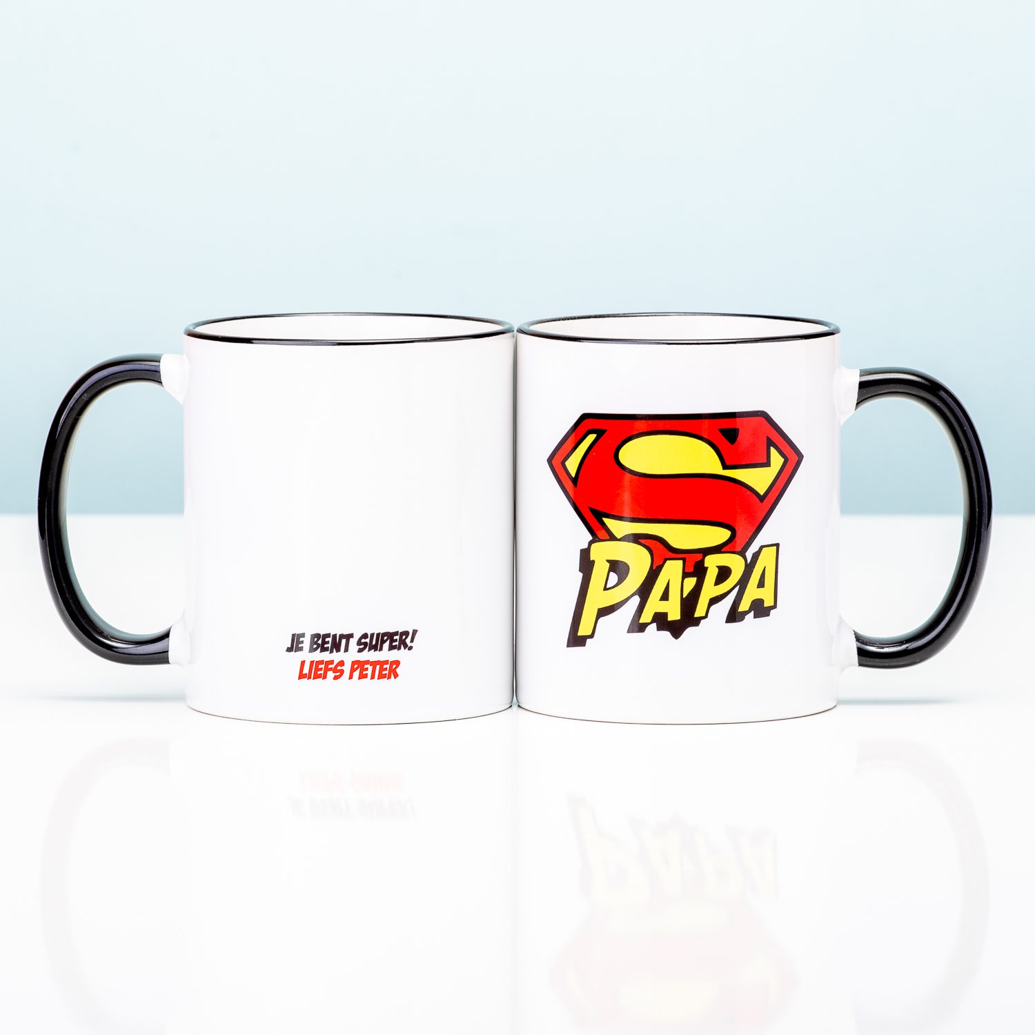 Zoons en dochters van Superpapa’s opgelet! Als je een uniek kado voor je vader zoekt, dan ben je bij ons aan het juiste adres. De Gepersonaliseerde mok Superpapa is een persoonlijk cadeau met jouw naam erop. Op de voorkant van de beker zie je een Superpapa logo. Op de achterkant staat de tekst: Je bent super! Liefs, gevolgd door jouw naam. Laat je vader zien hoe dol je op hem bent, door deze beker te geven als Vaderdag cadeau of verjaardagscadeau.