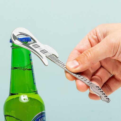Maak je biertje open als een rockster, met de Gitaar flesopener van Suck UK. Deze coole bieropener ziet eruit als een elektrische gitaar. Er komt geweldig geluid uit ook: de bevredigende ‘plop’ van een bierdopje dat van de fles wordt gehaald. Deze coole gitaar flesopener is het perfecte housewarmingcadeau, verjaardagscadeau voor rocksterren of gewoon als aardigheidje voor je oude pa, die dol is op een biertje.