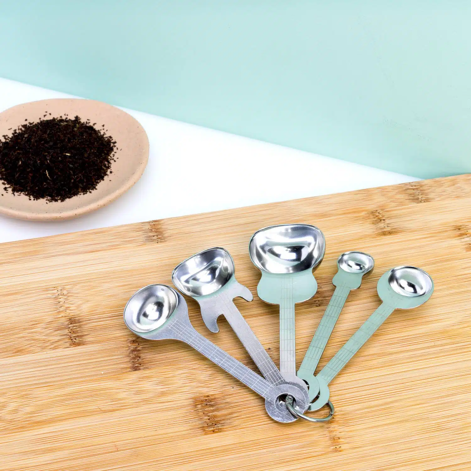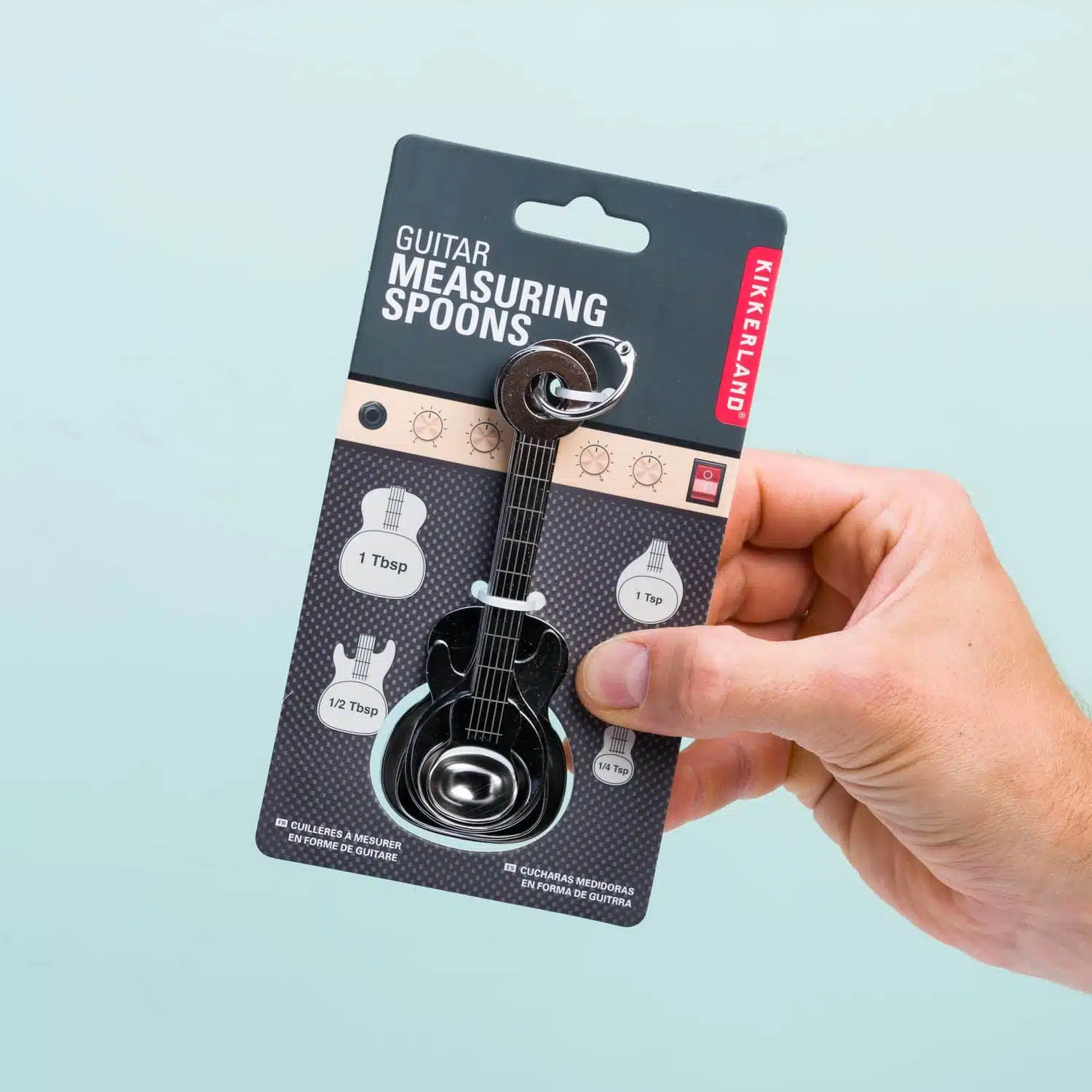 Ben je ook altijd helemaal geïnspireerd als je Heel Holland Bakt hebt gekeken? Met de Gitaar maatlepels (set van 5) van Kikkerland maak je net zulke lekkere baksels als de mensen in de show. Of zorg je er in elk geval voor dat je niet te veel zout gebruikt. De maatlepels zien eruit als een gitaar en zijn een stoere toevoeging aan je keuken. Ze meten een kwart-, halve en hele theelepel en een halve en hele eetlepel voor je af.