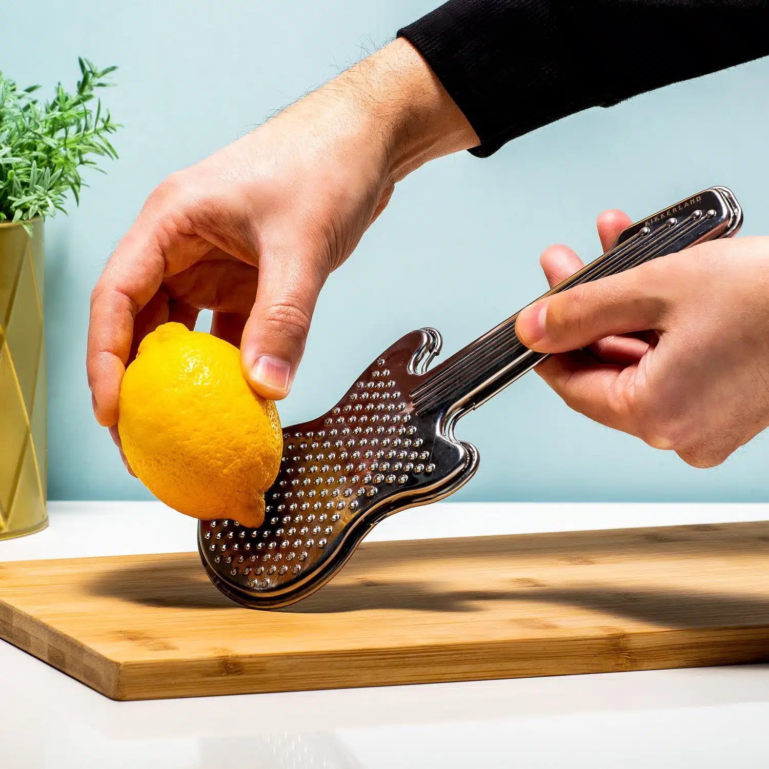 Als je vraagt om parmezaanse kaas op je pasta en iemand staat opeens met een gitaar naast je, dan kan dat wat vreemd overkomen. Gelukkig is de Gitaar rasp van Kikkerland uitermate geschikt voor het raspen van harde kazen. Deze grappige rasp, in de vorm van een gitaar, is vooral geschikt voor het fijn raspen van etenswaren. Denk bijvoorbeeld aan nootmuskaat of andere specerijen, of voor het zesten van citrusschillen voor in je baksels.