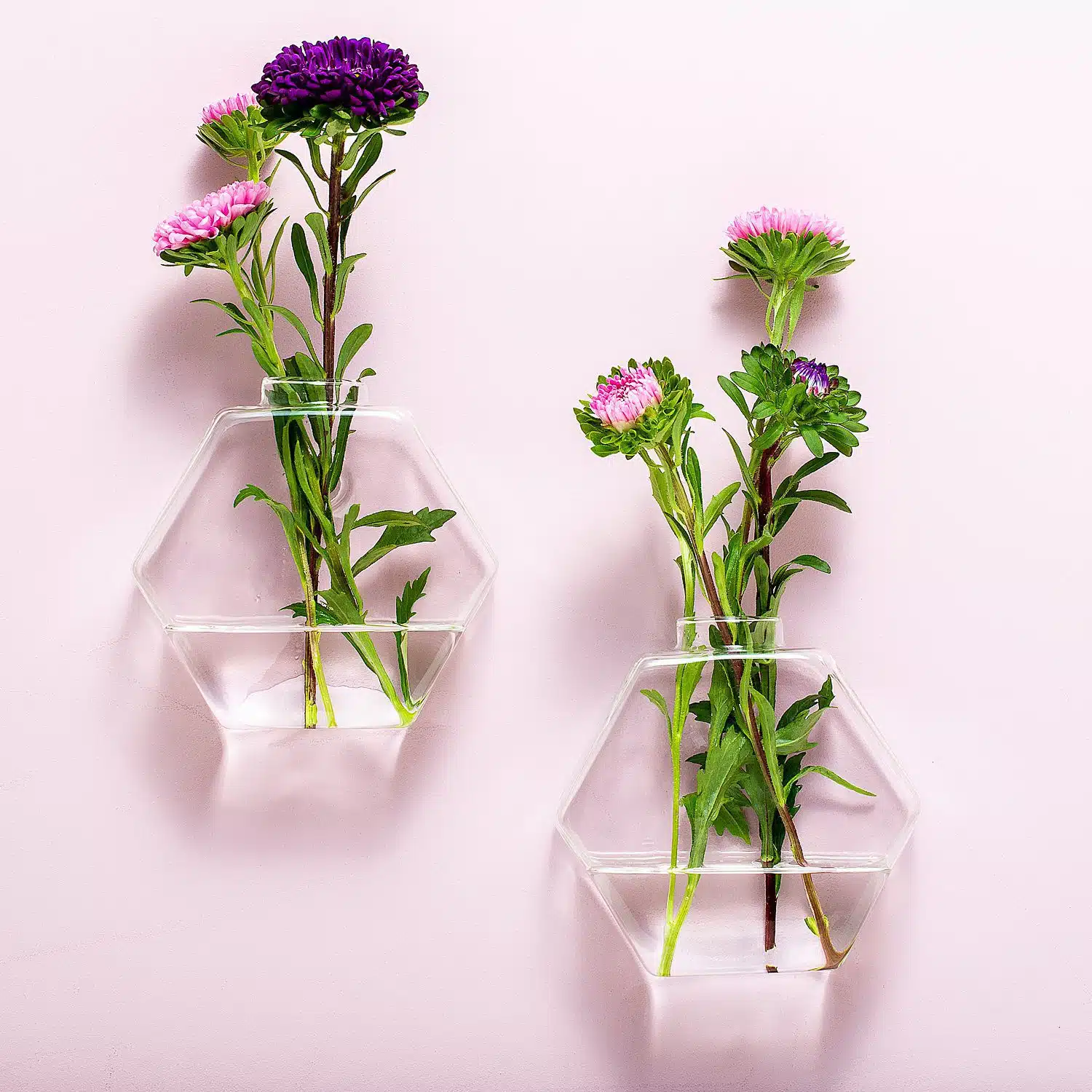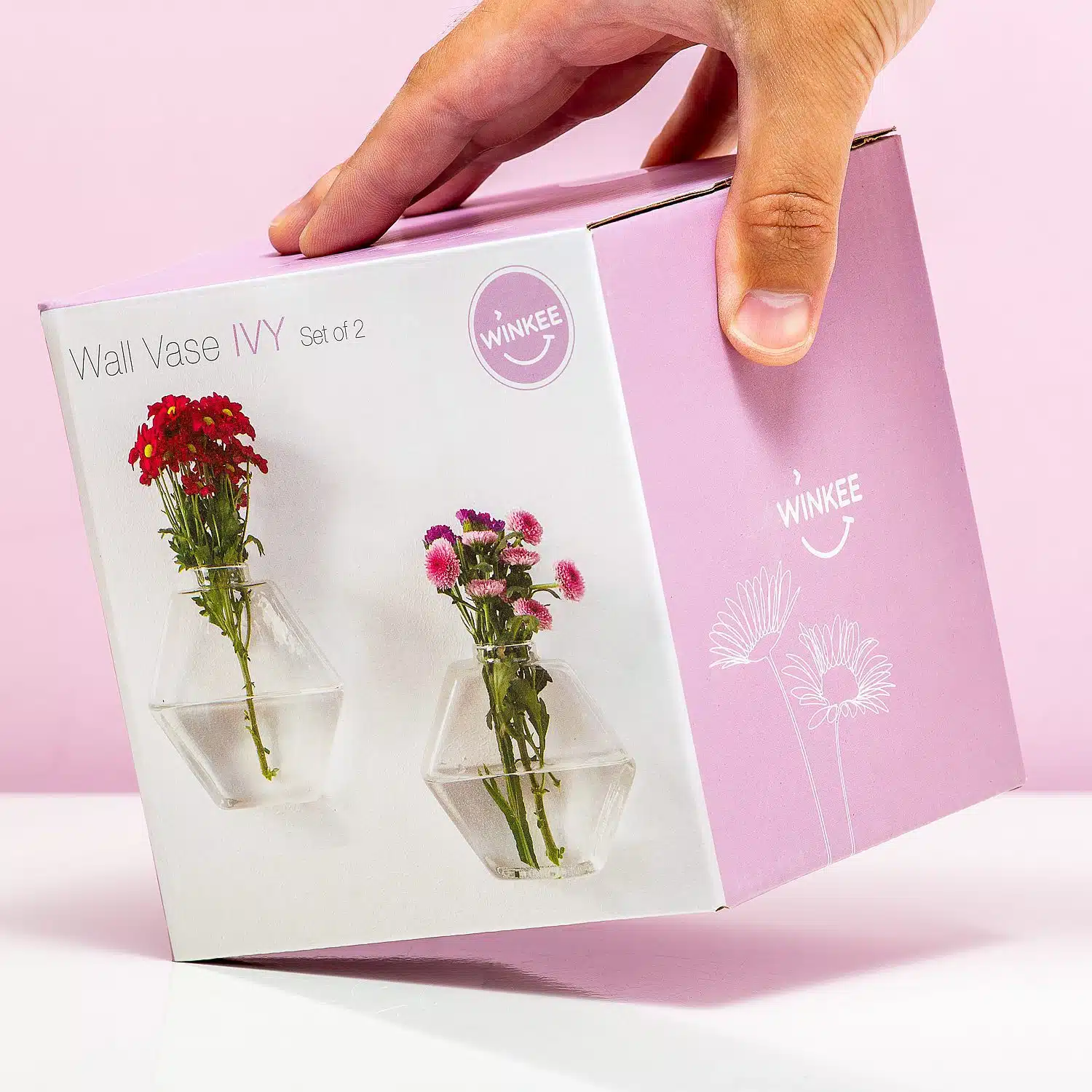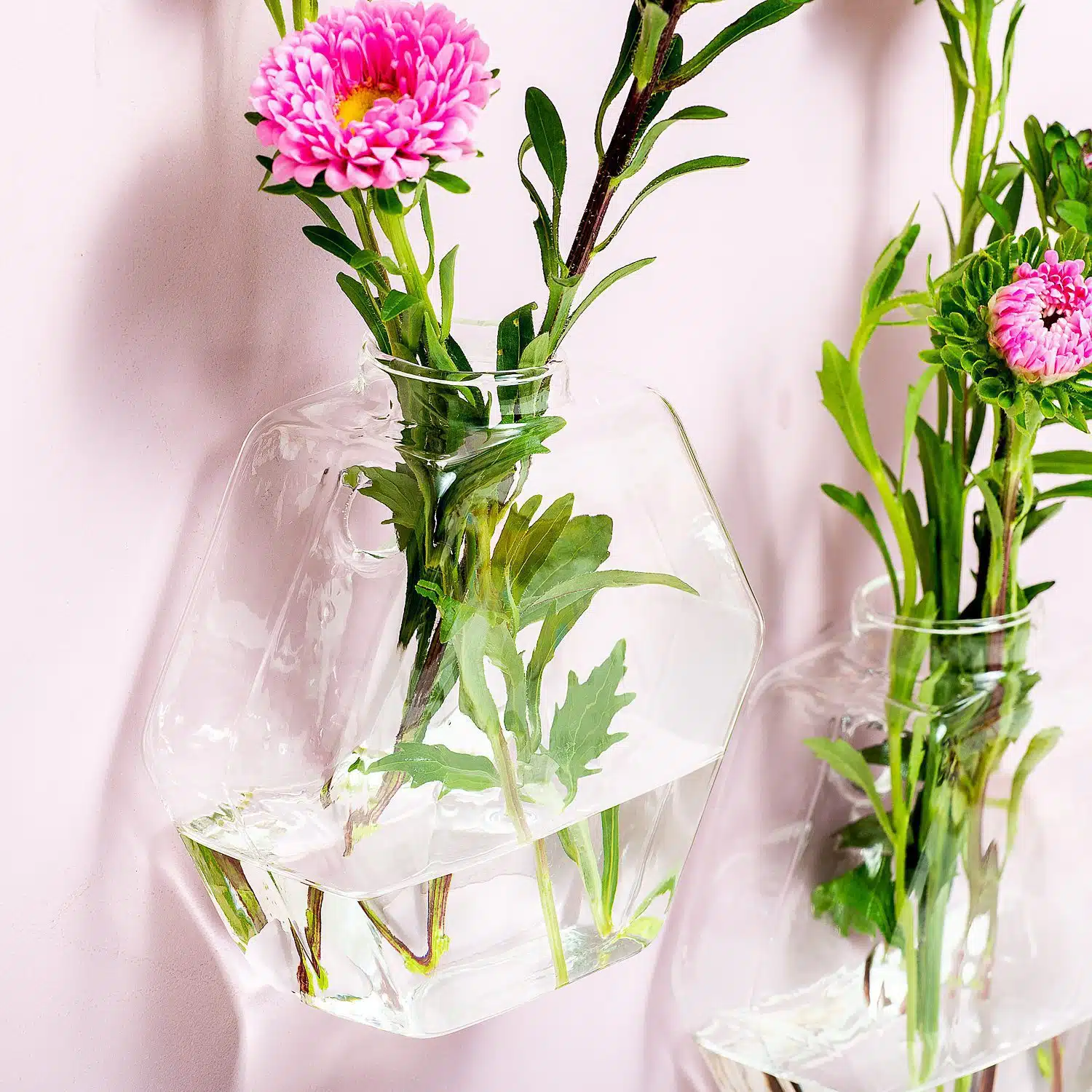 Takjes, bloemen en bladeren: de Glazen muurvaasjes (set van 2) van Winkee zorgen voor een vrolijke look van je muur. Deze vaasjes hang je met de speciale haakjes aan je muur. Hierdoor zijn ze ideaal voor mensen die klein wonen, zoals studenten in hun kamer. Maar natuurlijk zijn de vaasjes ook geschikt voor in het toilet, op kantoor, in winkels of restaurants. Het is woonaccessoire dat door de bloemen die je erin doet steeds een andere uitstraling heeft. De vaasjes zijn leverbaar in verschillende vormen.
