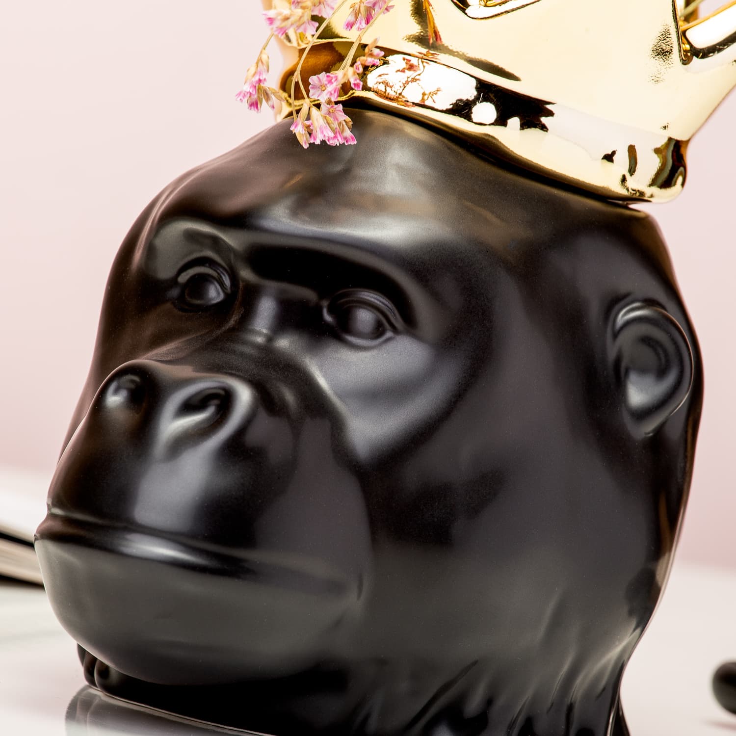 Dol op exotische dieren? Zet dan de Gorilla vaas van Invotis in je huis! Deze gorilla maakt zijn status waar als King of the Jungle. Hij ziet er niet alleen super stoer uit, maar heeft ook nog een mooie glimmende gouden kroon op zijn kop. De gorilla is mét bloemen een eyecatcher in je huis, maar ook zonder bloemen staat hij super stoer. Of geef er een extra exotisch tintje aan, met bijvoorbeeld het blad van een Monstera plant.