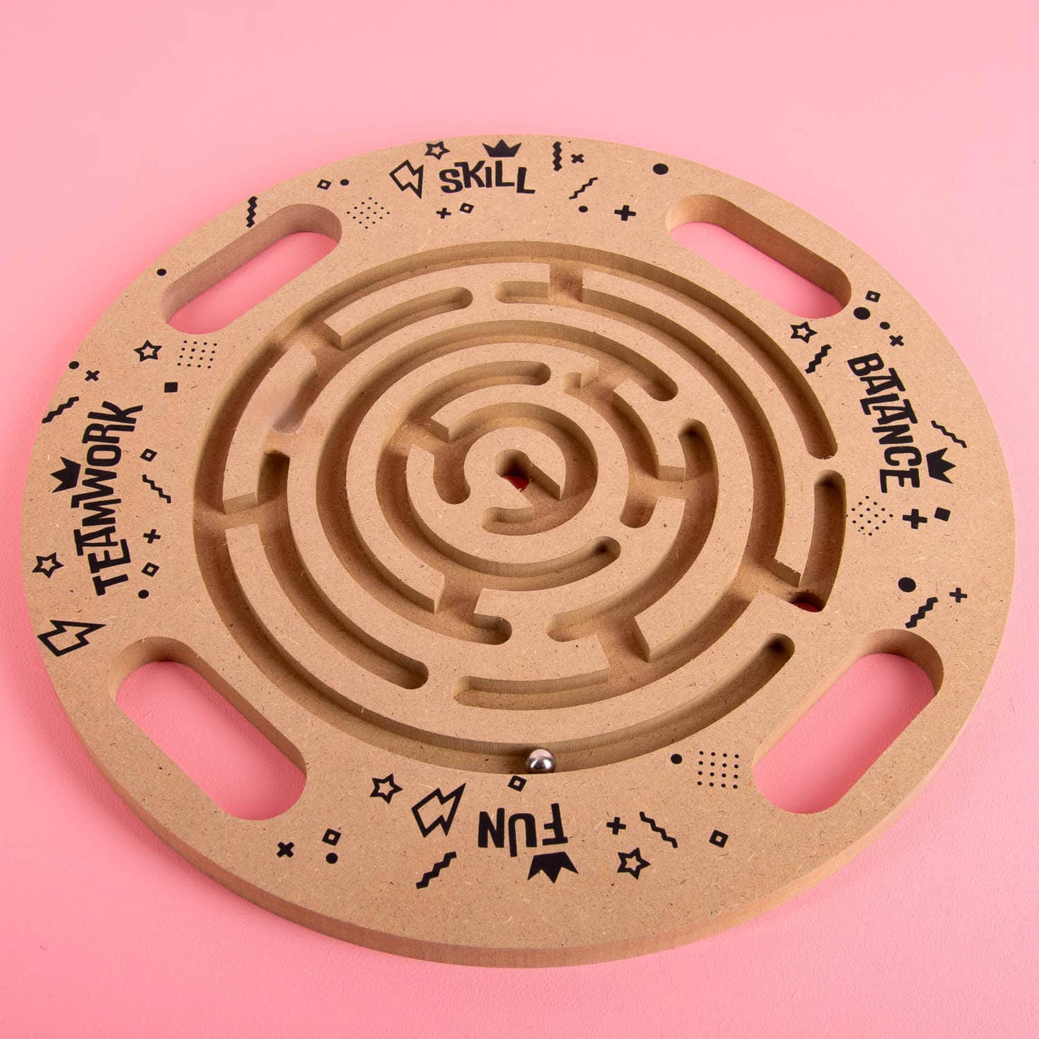 Werken jij en je collega’s goed als team? Dan is eenvoudig te testen met de Teamwork doolhof van hout. Dit grappige doolhof los je niet in je eentje op, maar met behulp van anderen. Je kunt het doolhof met z’n tweeën of vieren vasthouden en zo de stalen bal de juiste kant op sturen. Hilarisch in de koffiepauze en nog grappiger na een paar drankjes op een feestje.
