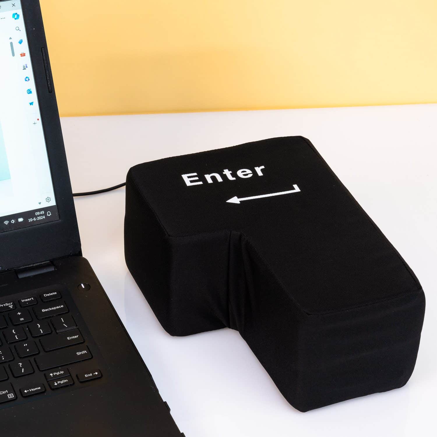 Voel je je regelmatig gefrustreerd tijdens het werk? De Grote enterknop van MikaMax zorgt ervoor dat je je frustraties even kunt afreageren. Deze knop is gemaakt van polyester en spons en voelt daardoor heerlijk zacht aan. Je kunt er gerust op slaan, maar ook even op uitrusten als niemand kijkt. Grappig detail: de enterknop werkt echt. Je kunt hem op je pc of laptop aansluiten met de USB-kabel. Het is een perfect cadeautje voor elke collega die regelmatig een woede-uitbarsting heeft.
