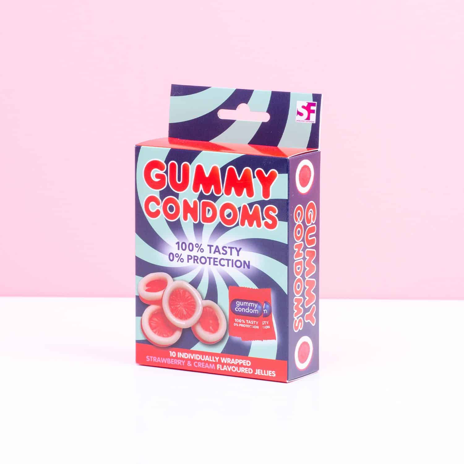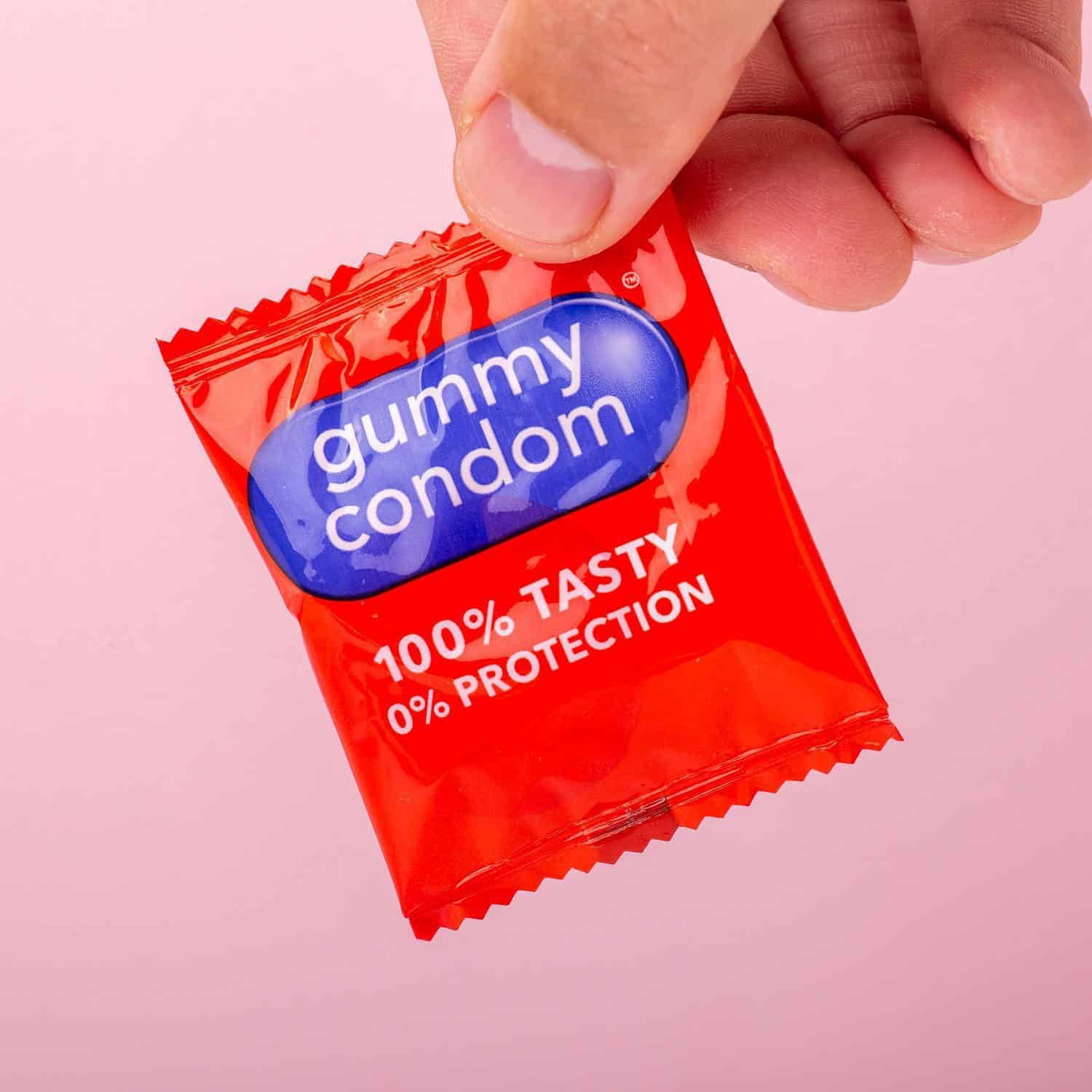 Bied je vrienden een uniek snoepje aan, met deze Gummy Condoms. Snoepjes in de vorm van… je raadt het al: condooms. De winegums zijn rood, hebben een dikkere witte rand en zijn individueel verpakt. En ook die verpakking, plus het doosje waar de condoom snoepjes in zitten, lijken net echt. Deel deze hilarische snoepjes – winegums met aardbeiensmaak – uit aan je vrienden. Wedden dat ze het net zo grappig vinden als jij? In het doosje zitten in totaal 10 snoepjes. Een hilarisch cadeautje ook.
