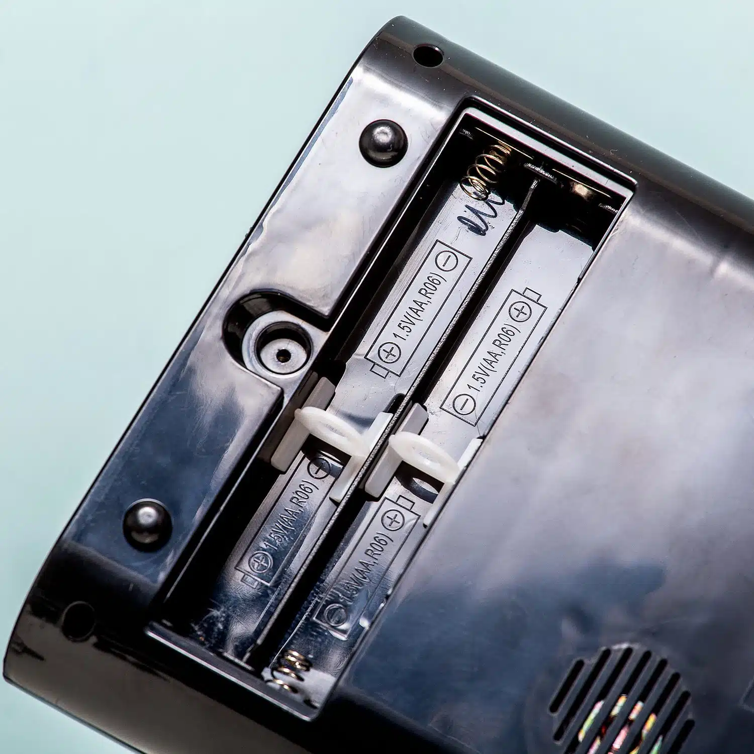 • De wekker werkt op 4 AA-batterijen (niet inbegrepen)