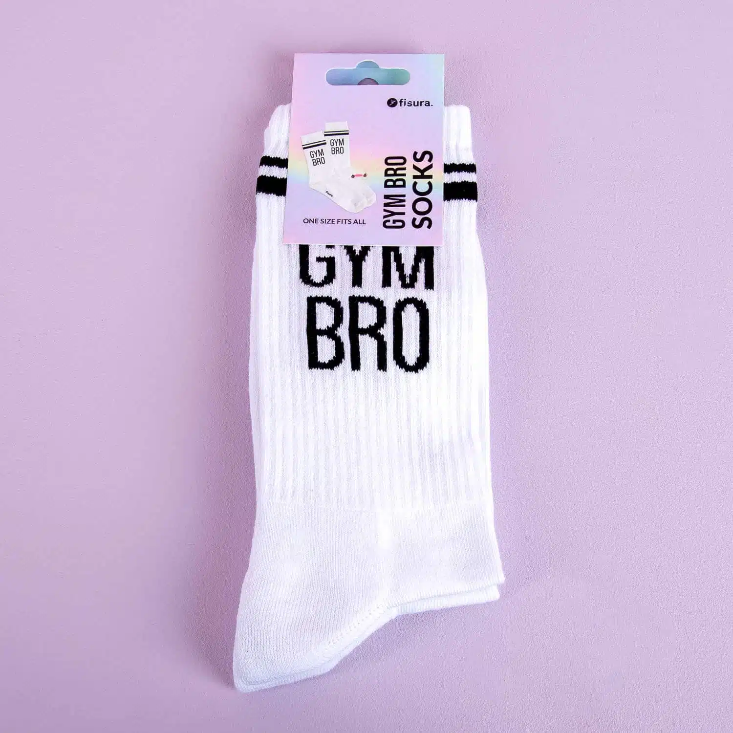 Losse hemden die zijn biceps tonen, strakke broeken voor de gespierde bovenbenen: jouw vriend laat graag zien hoeveel tijd hij doorbrengt in de gym. De Gym bro sokken van Fisura passen perfect bij zijn dagelijkse outfit. Op de sokken staat de tekst GYM BRO en beschrijven jouw vriend, broer of collega: daardoor zijn deze sokken een grappig cadeautje voor hen. Kan iedereen direct die gespierde kuiten checken!