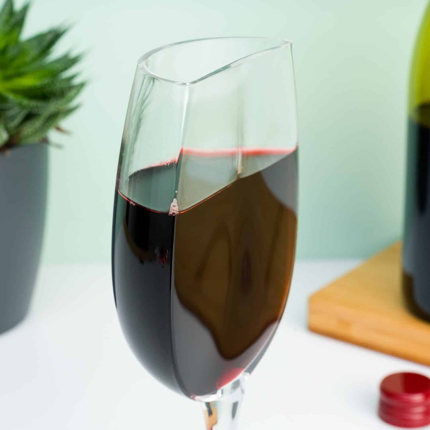 Wil je bescheiden schoonvader maar een half glaasje wijn? Heb je van die vrienden die aan het eind van de avond nog een half glaasje willen voor ze naar huis gaan? Serveer de wijn in het Half wijnglas van Winkee! Dit super grappige wijnglas lijkt gehalveerd: de ene kant is rond en de andere kant plat. Een ideaal glas voor mensen die maar halve glaasjes drinken.