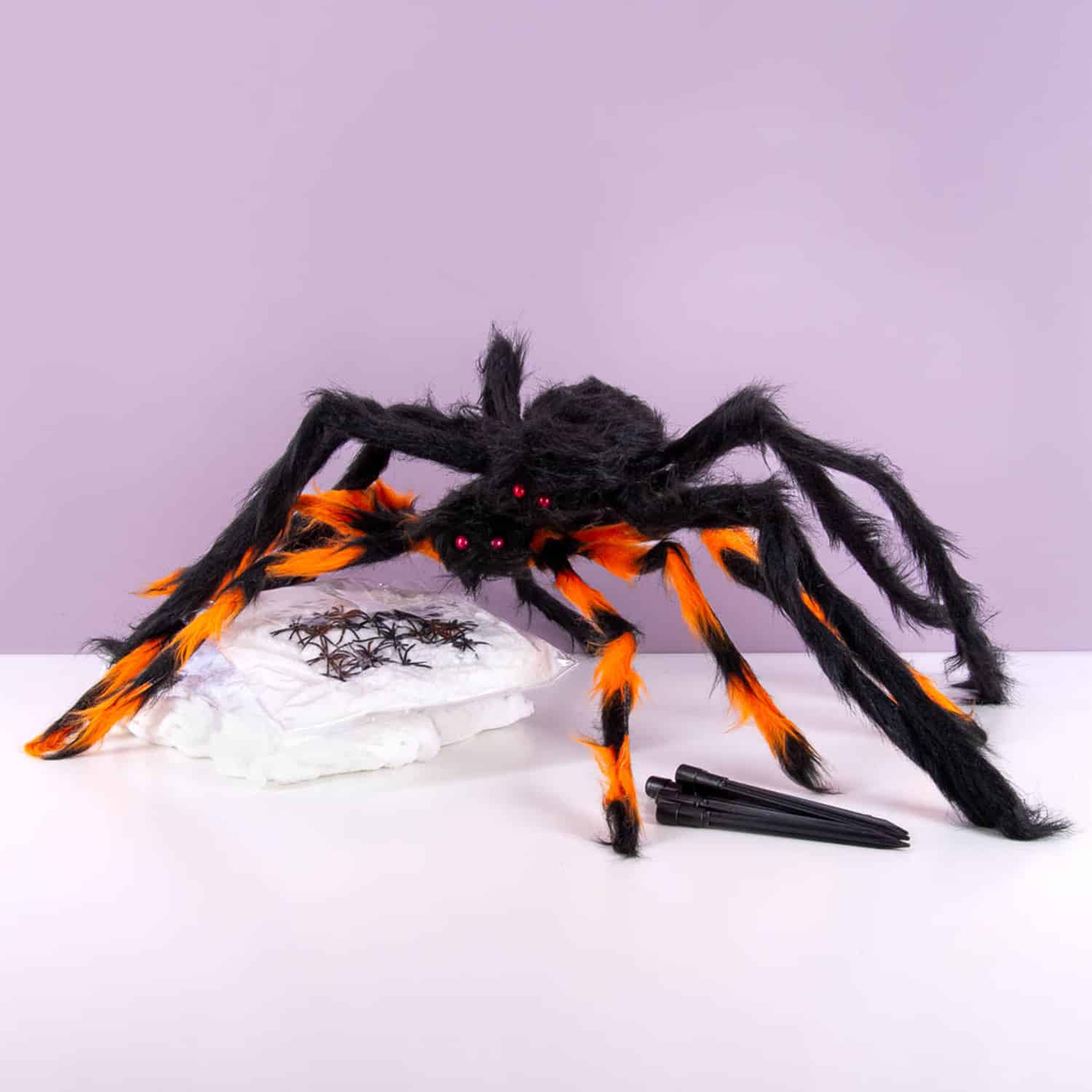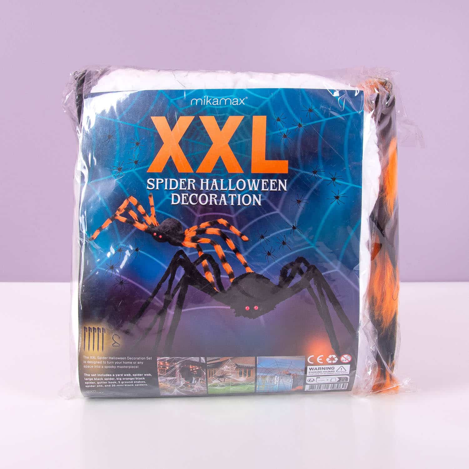 Ben je al vroeg in het jaar plannen aan het maken hoe je iedereen kunt laten schrikken met Halloween? De Halloweendecoratie XXL spinnen van MikaMax mag niet ontbreken in je voortuin! De set bestaat uit een metersgroot web, twee hele grote spinnen en twintig kleine spinnetjes. Met de haringen zet je alles stevig vast en kun jij je buren lekker laten schrikken.