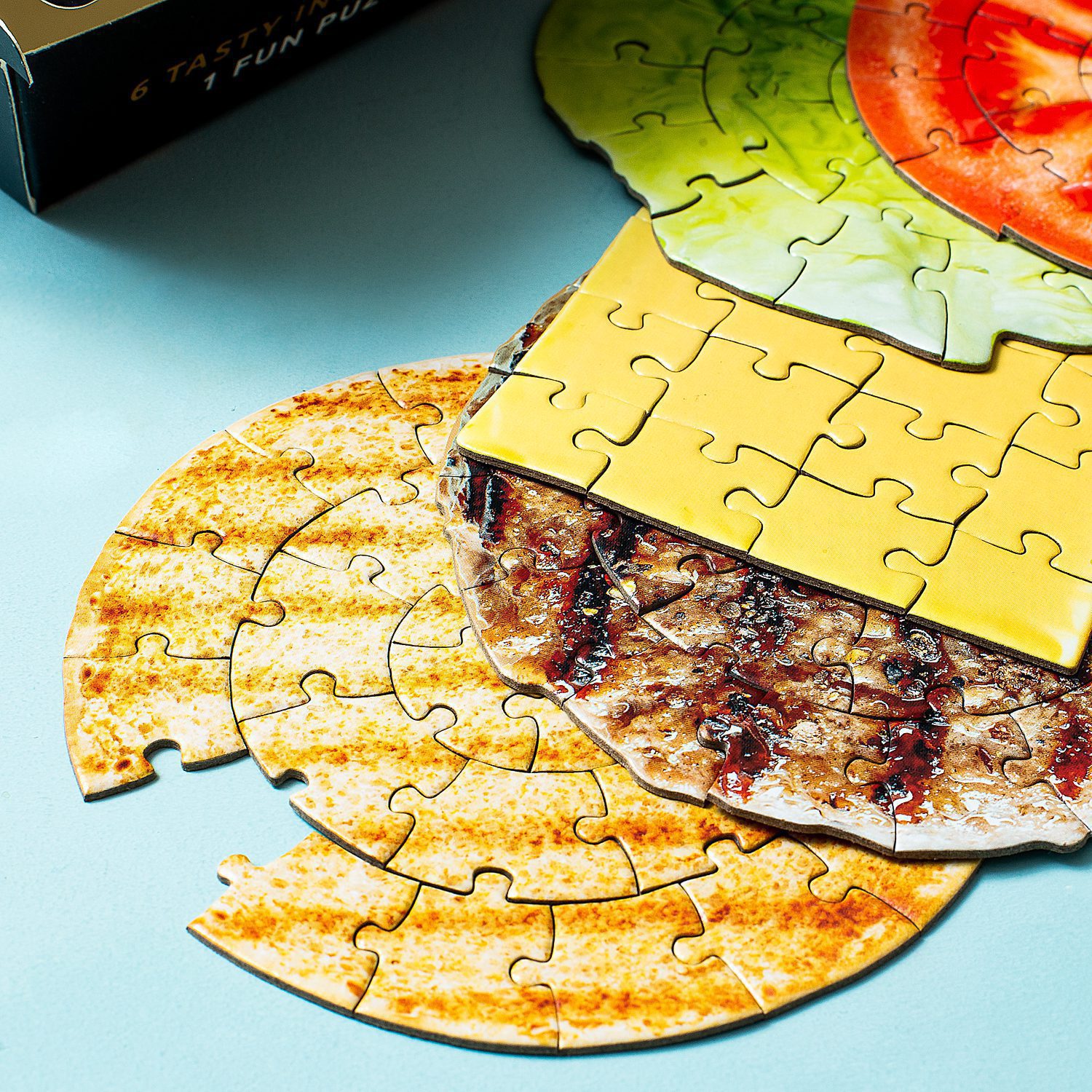 We beloven het: dit is zonder twijfel de lekkerste puzzel die je ooit hebt gezien. De Hamburger puzzel (160 stukjes) van Pikkii bestaat uit zes verschillende lagen, waarmee je een complete hamburger in elkaar puzzelt. Je begint met de onderkant van het broodje, dan de laag sla, de burger, een plakje kaas, een tomaat en tot slot de bovenkant van het hamburgerbroodje. Het enige nadeel van de puzzel? Je krijgt er trek van!