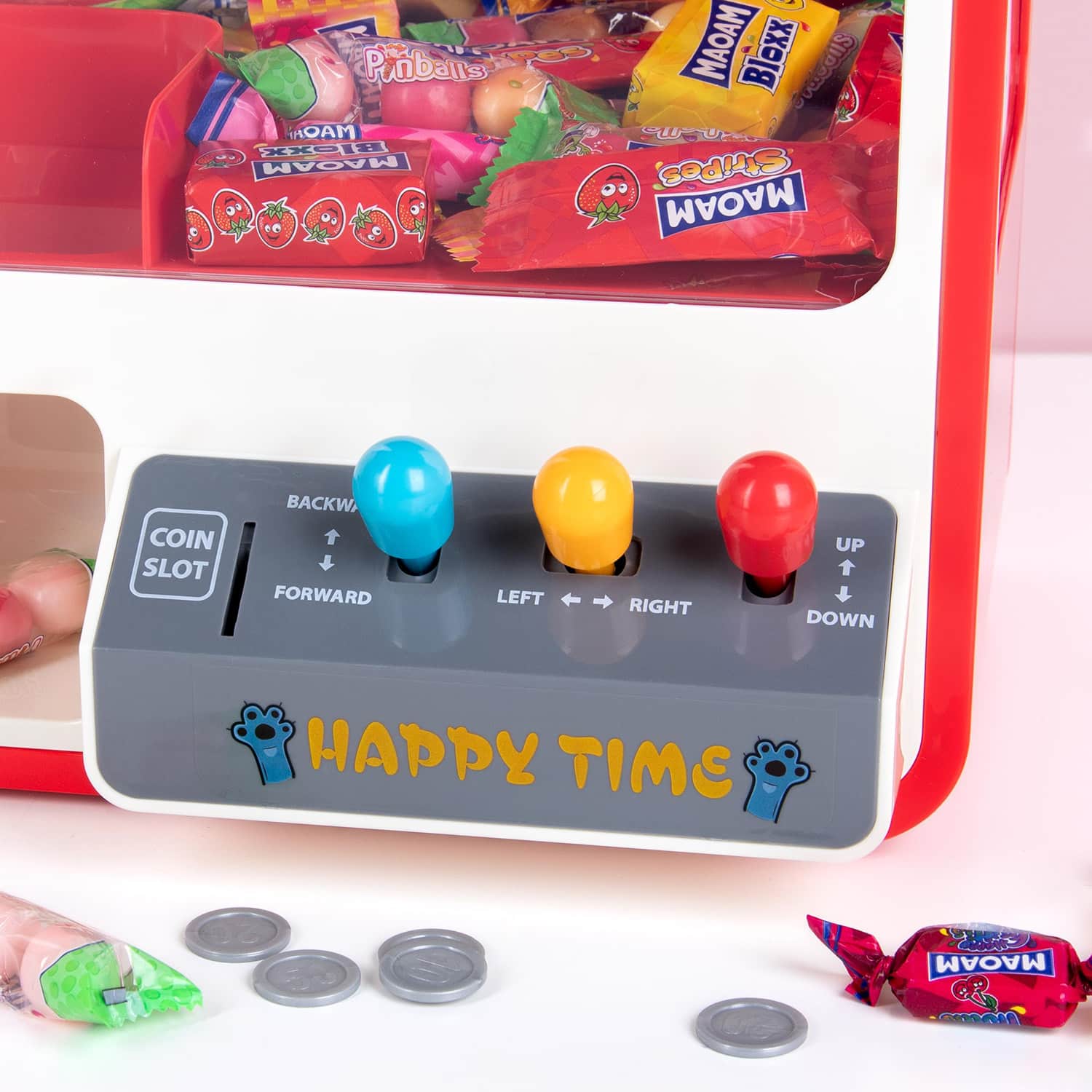Heb je geen idee wat je moet organiseren voor het kinderfeestje van je zoon of dochter? Wees gerust: met de Happy Time snoepmachine vermaken de kinderen zichzelf wel. Deze grappige snoepmachine ziet eruit alsof ‘ie op een kermis thuis hoort. Je vult hem met snoep en probeert de snoepjes te pakken door de joysticks te bewegen. De grijpmachine komt met plastic muntjes: voor elke beurt heb je één muntje nodig en heb je 60 seconden de tijd om een snoepje te grijpen.