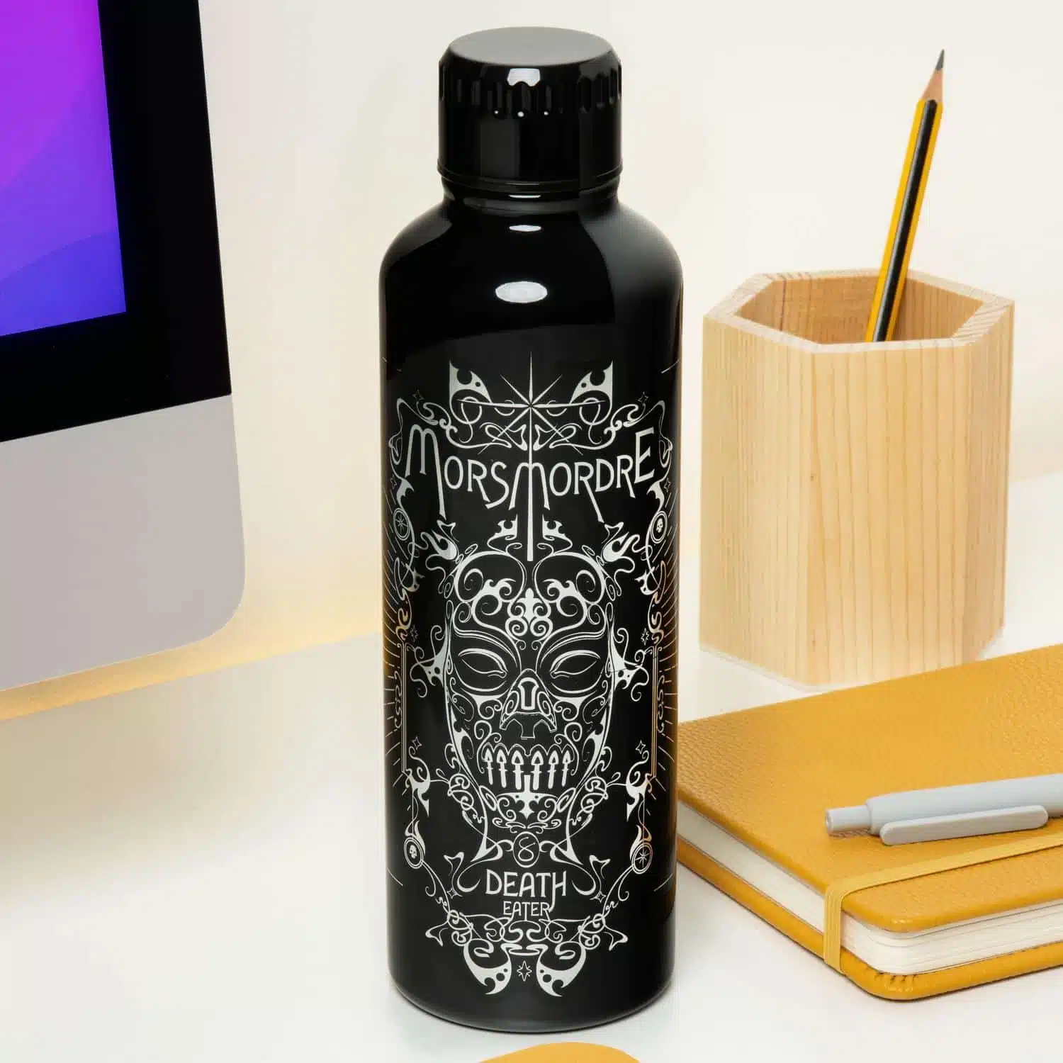 De Death Eater waterfles vanĀ Harry Potter heeft een donker design met het herkenbare Dark Mark-logo. Perfect om je drankjes koel te houden en een must-have voor tovenaars die de duistere kant verkiezen.