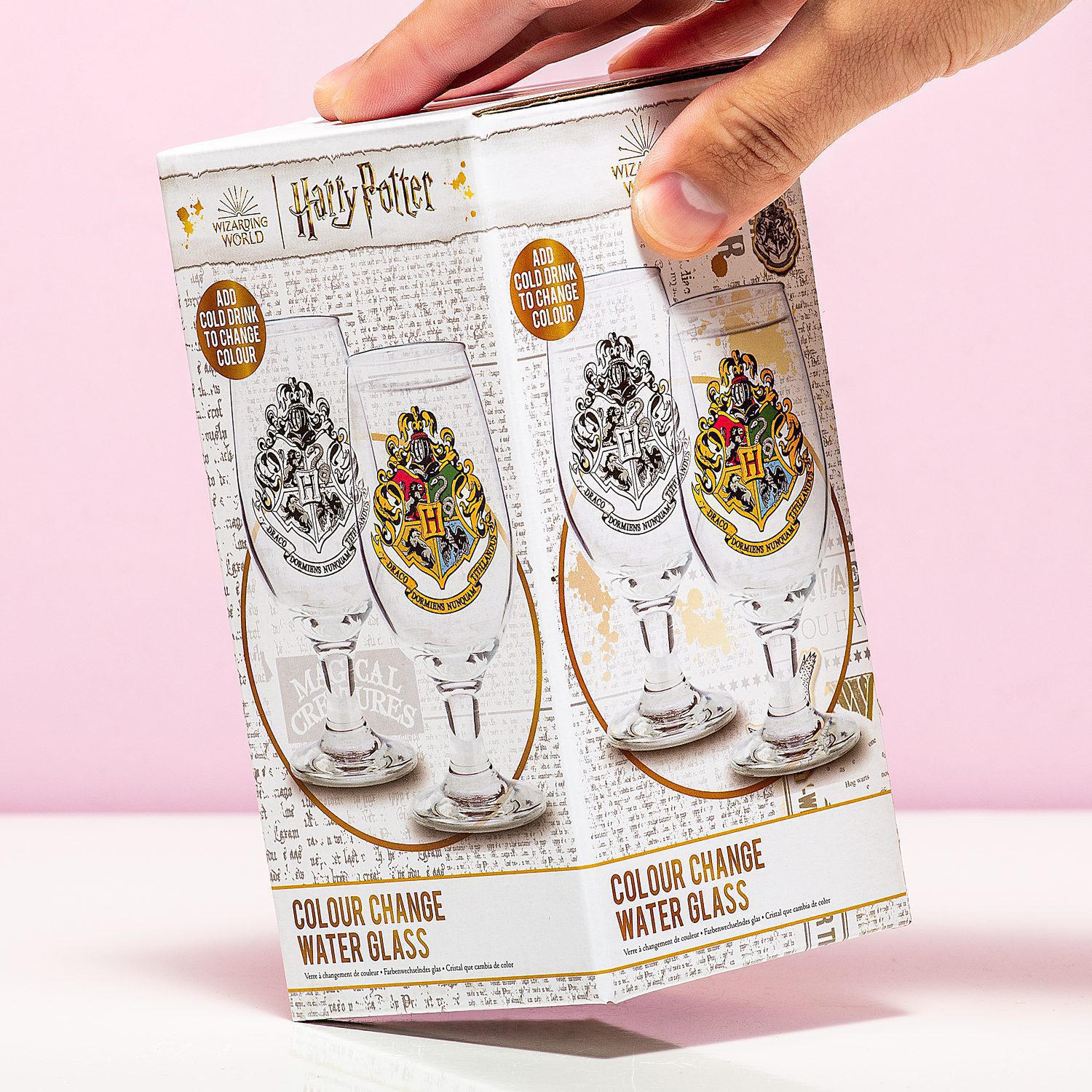 We hebben weer iets unieks voor de Harry Potter fan! Je kent warmtegevoelige bekers vast wel, maar wist je dat er ook koudegevoelige glazen zijn? Het Hogwarts koudegevoelige glas van Harry Potter is daar een voorbeeld van. Op dit glas staan de logo’s van de vier Hogwarts afdelingen in het zwart-wit afgebeeld. Is je water of biertje koud genoeg, dan komen de logo’s van Huffelpuf, Ravenklauw, Griffoendor en Zwadderich tot leven met kleur. Een perfect glas voor koude drankjes op een warme zomerdag.
