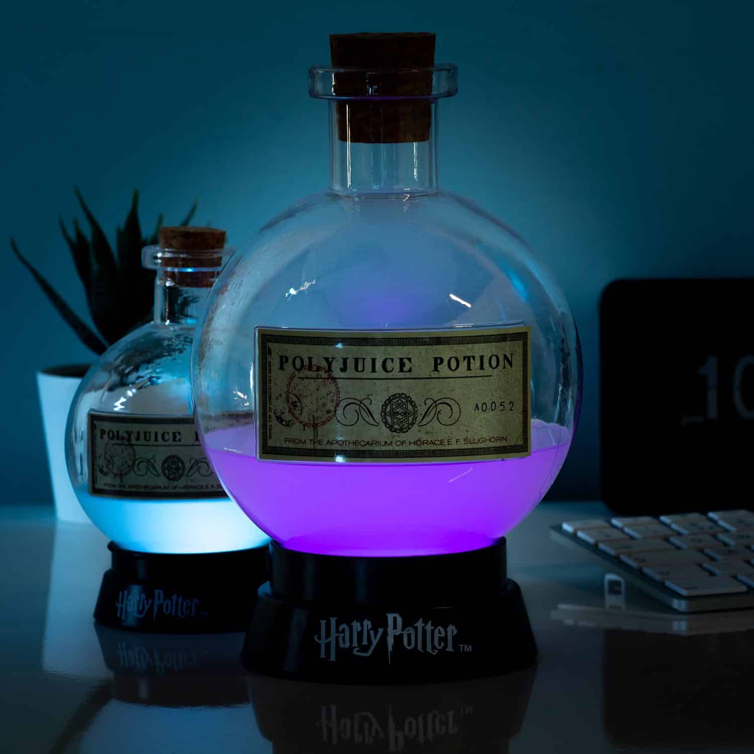 Laat je betoveren door de magie van Harry Potter. Met de Potion lamp van Harry Potter haal je een origineel lampje in huis. Hij ziet eruit als een laboratoriumfles, waar een magisch drankje in wordt gebrouwen. Het vloeistof gedeelte van de lamp wordt verlicht in allerlei kleuren, die prachtig in elkaar overlopen. Zet dit lampje op je nachtkastje: zo heb je de perfecte verlichting om één van je Harry Potter boeken te lezen.