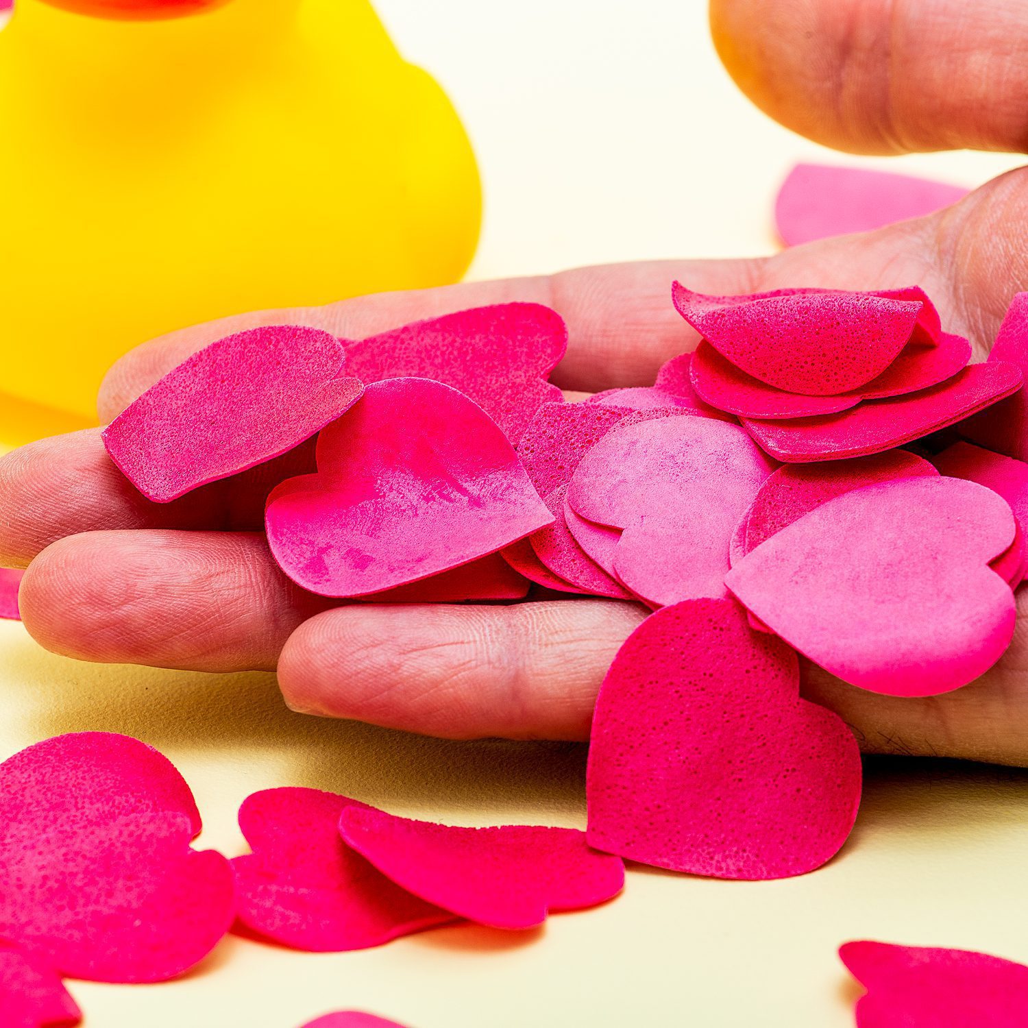 Wil jij indruk maken op je geliefde? Verras hem of haar met een heerlijk naar rozen geurend bad met deze Hart badconfetti van Gift Republic! Deze hartvormige badconfetti is de perfecte manier om je partner – of jezelf! – te verwennen. Strooi wat blaadjes in het badwater en geniet van de romantische geur.